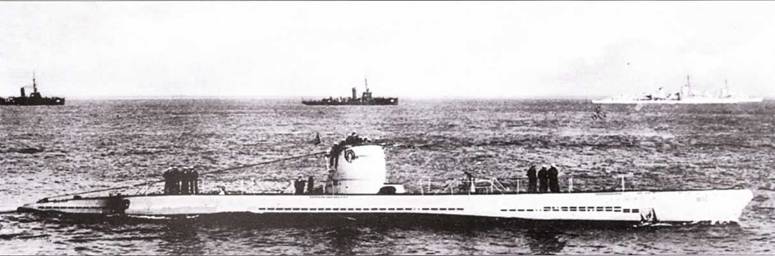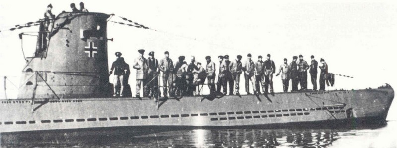 U-9 выходит в боевой поход из военно-морской базы в Констанце (Румыния), май,1943 год.Хорошо виден камуфляж.