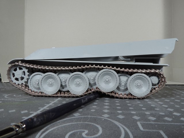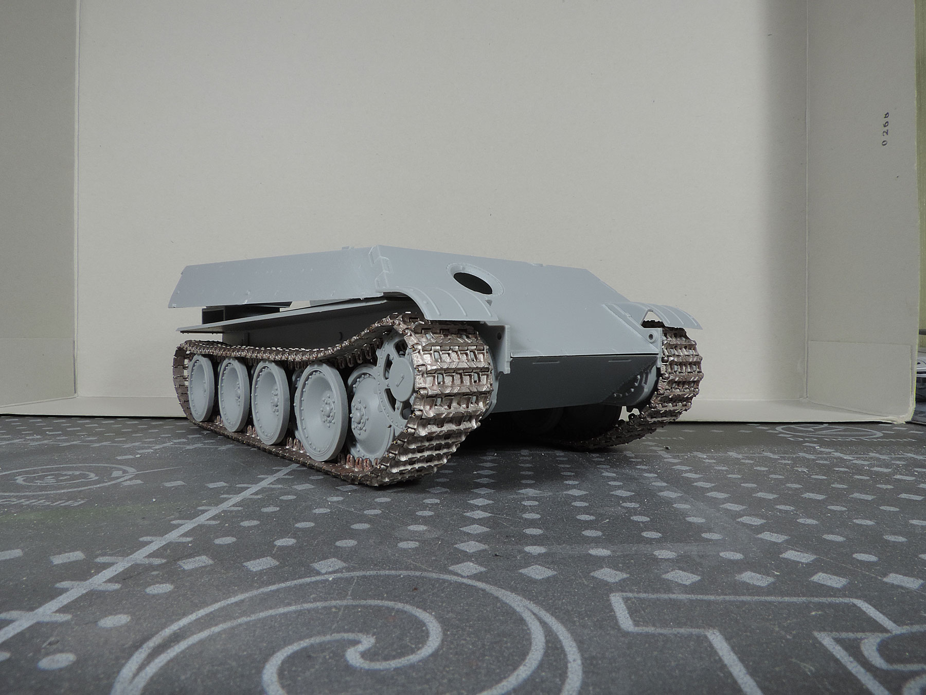 Вопрос не праздный, потому что я кучу видел таких "Пантер" с комментарием "ну я торсионы приклеил а то она ровно не стояла". Хотя если траки из металла - то конечно, картина несколько исправляется. Но, это конечно лирика, и чисто моё мнение по сборке этой модели.
