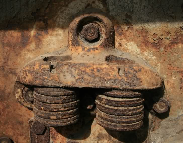 Это были на самом деле тонкие пластинки, с гайкой на обращённой к спонсону части и болтом на обращённой к ящику. Они собственно ящик и поддерживали снизу, а ещё правильней - предотвращали его соскакивание с крючьев, которыми он вешался на П-образные крепления на ним, висел он строго говоря на этих крюках (изогнутых пластинах).