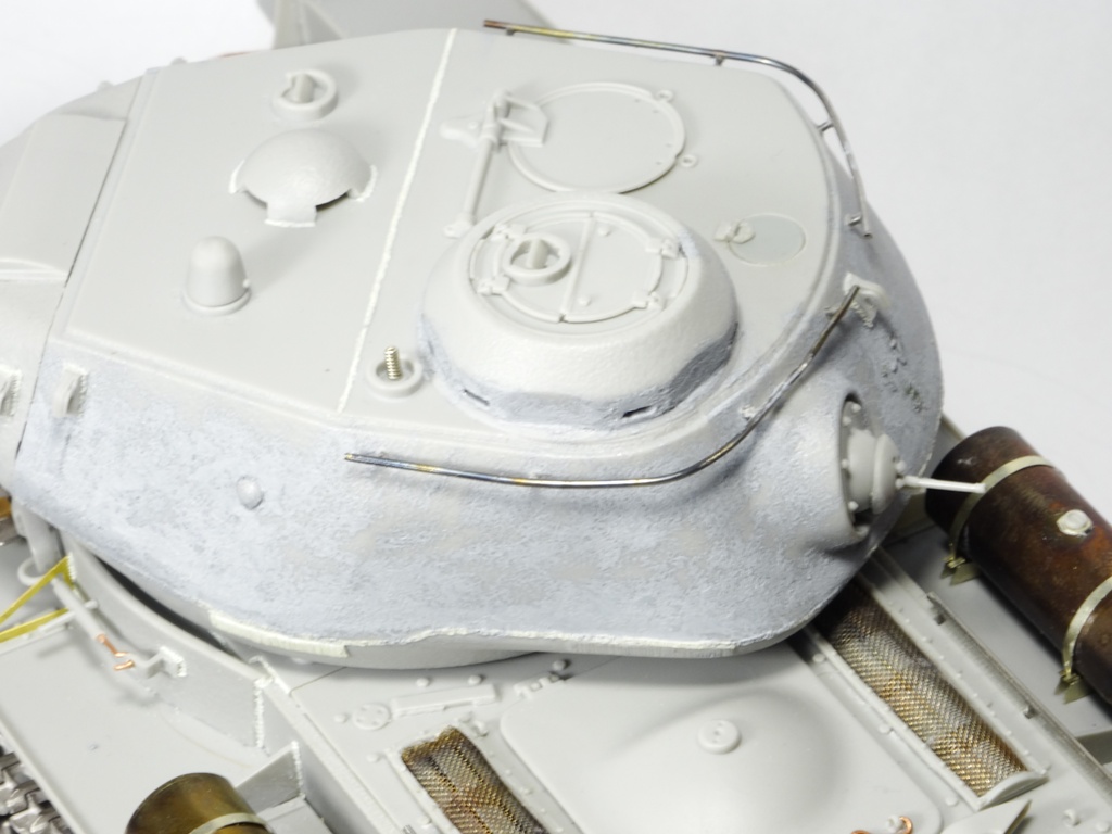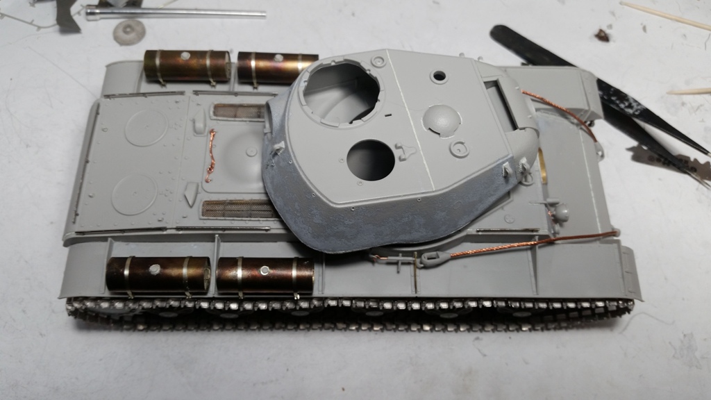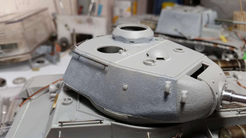 Всем привет! Вернулся к башне. Добавил следы газореза на основании башни и в маске орудия. Установил пушку, поручни, комбашню ( в ней пришлось смотровые щели уменьшить).