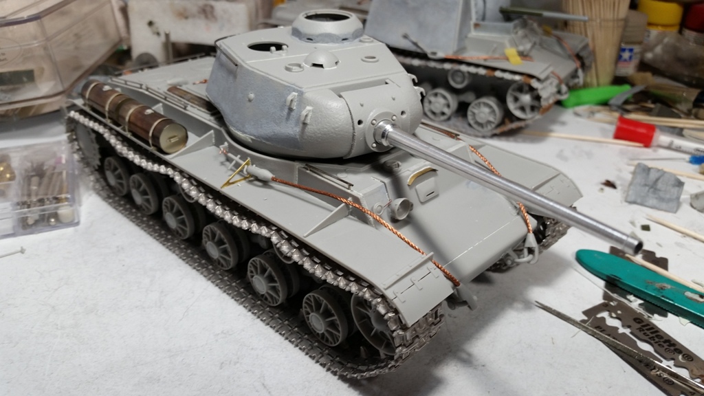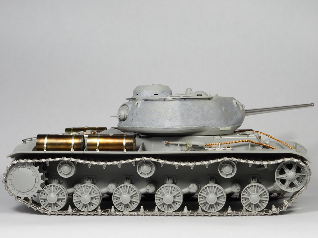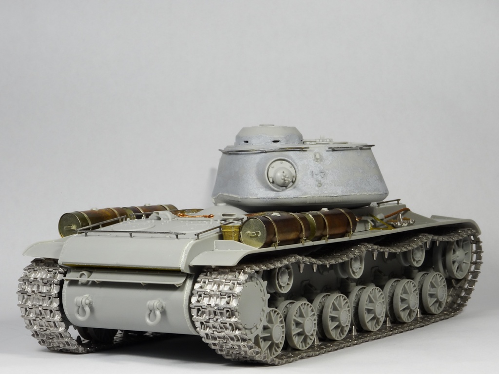 КВ85 и 1С имели детали корпуса со ступенью,но тут уже исправить трудно,траки наоборот стоят ,надеюсь это просто прикид пока