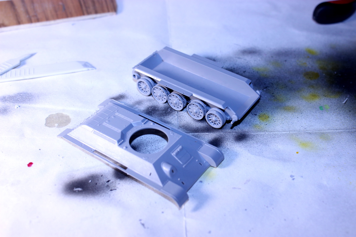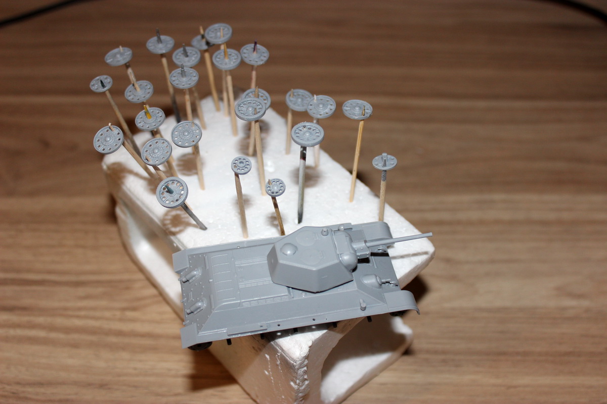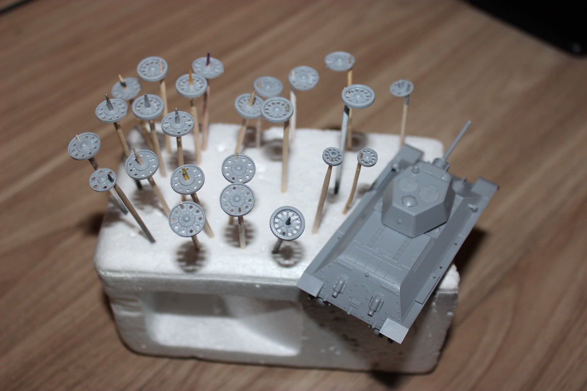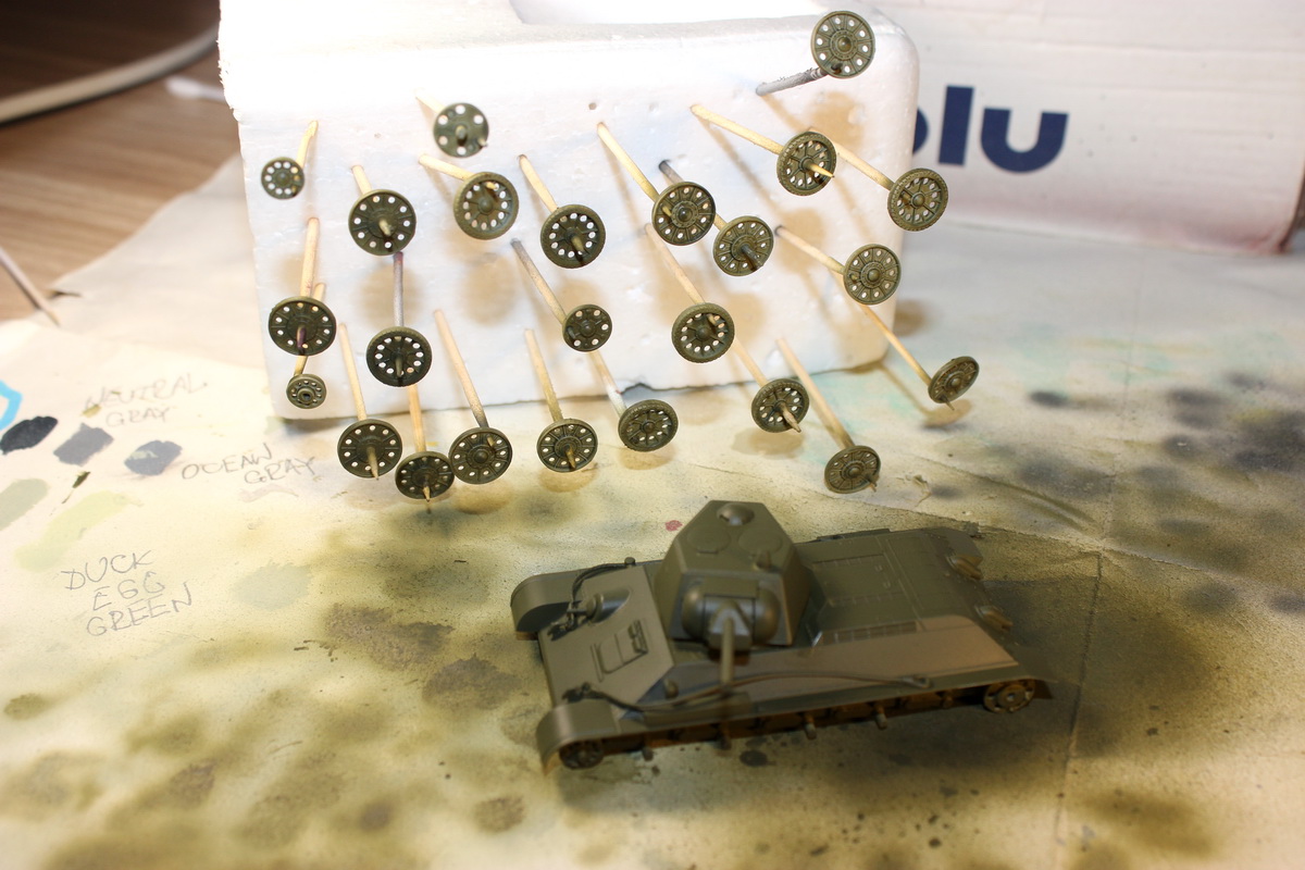 Перископ к сожалению уже приклеен,пулемет намечу,щели устранил. Прошел первым слоем Russian Green 4BO: