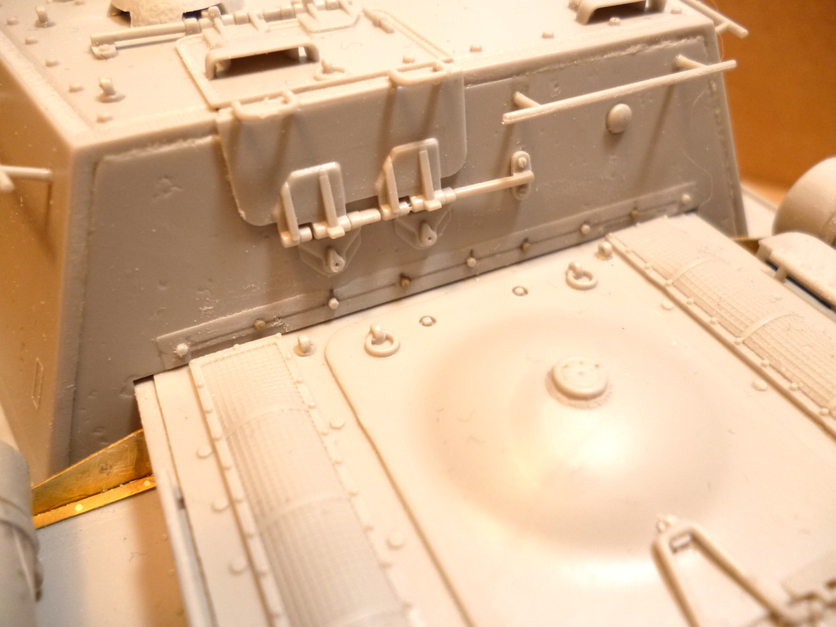 Стройка по СУ-152 http://artmodels.forumgrad.com/t189-topic По косякам у Трампа действительно если делать правильно, то пилить придётся не мало. Но по габаритным размерам проблем нет. Размеры брал опираясь на чертежи из книги Юры. Если говорить о Бронко, то замечаний тоже хватает. Особенно много проблем с исправлением заднего нижнего гнутого листа-угол не верный. Сам лично замерял на экспонате. Размер под сетку выброса тёплого воздуха так же не верен. Эти места не отражены на основных чертежах, поэтому Бронко немного неверно их исполнило. Пашалок в курсе этих моментов. Ну и мелких недочётов хватает, типа сварных швов на плитах МТО, которые крепились болтами. Хотя в целом надор Бронко отличный по качеству и детализации!