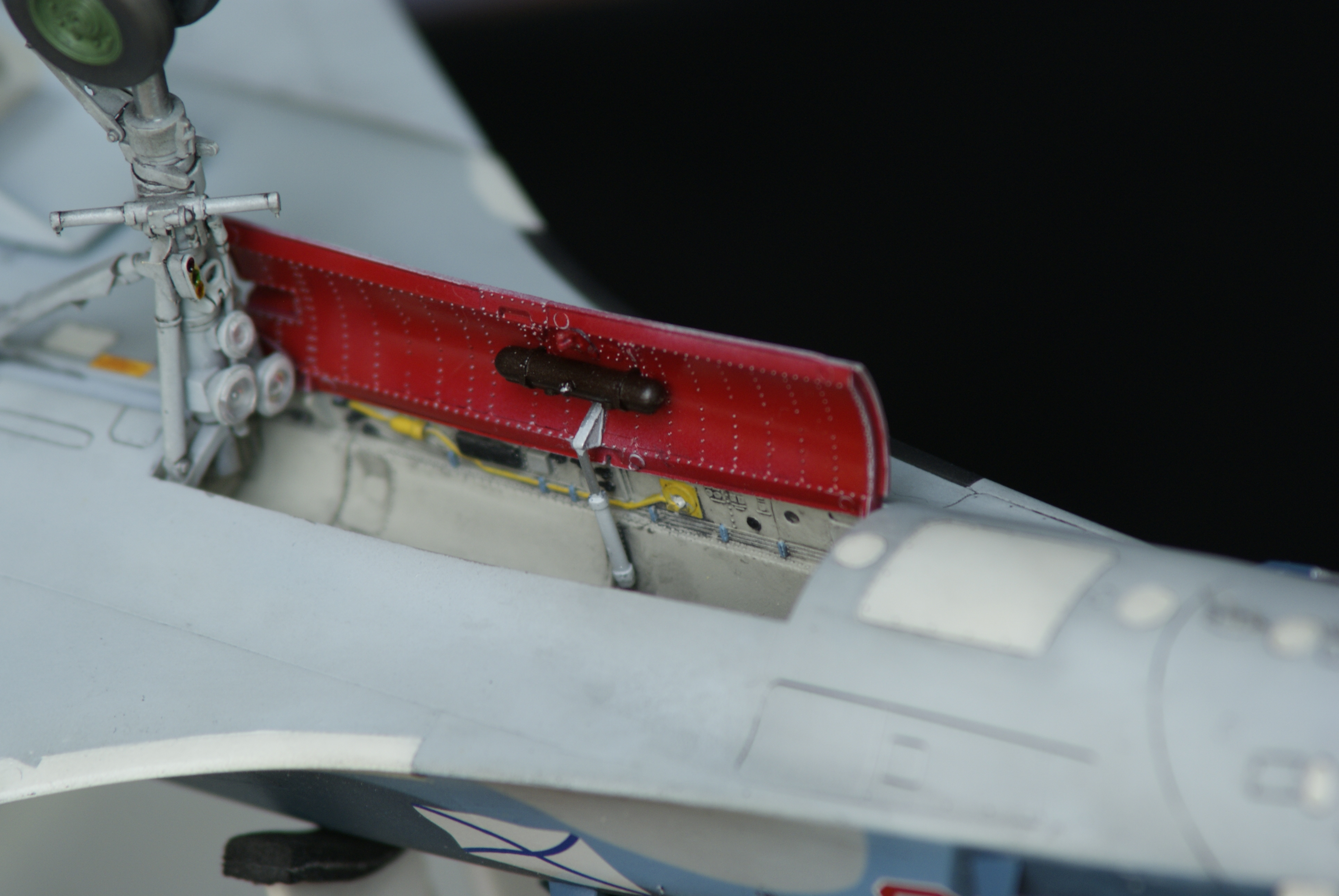 Понял, что забыл сразу вклеить педали и ручку выпуска шасси. Помучился, но исправил. Народ подскажите, цвет передней ниши внутри? Основной базовый? Или всё таки какой то серый? Судя по валкам Назара, вроде базовый, а по моделям коллег вроде серый.