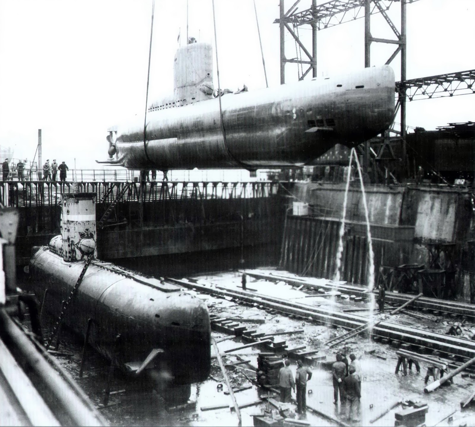 U-4709 после спуски со стапеля на верфи "Германия", 8 февраля 1945 года.