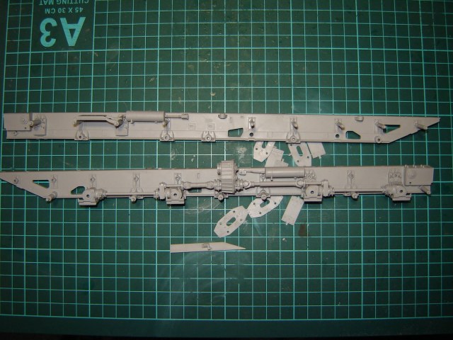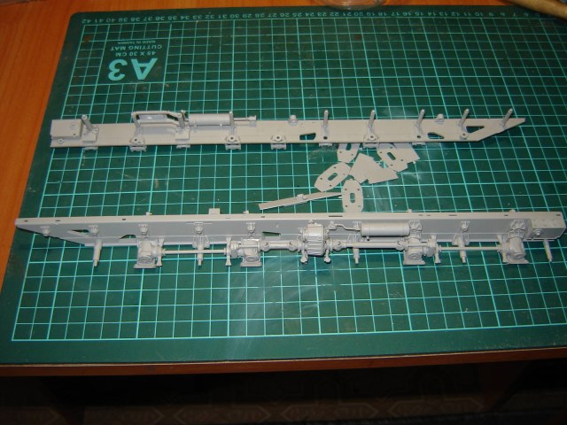Посмотерл мануал--мутно, но понял, что раму(без бампера) и ходовую можно начать. Все в основном идет наверх машины