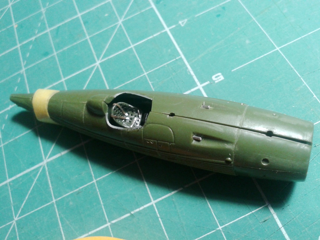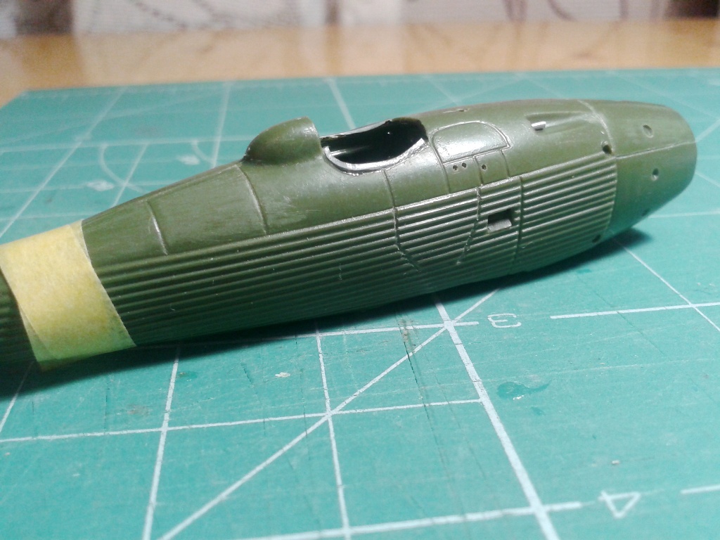На сегодняшний день: сточены кромки кокпита, частично готов кабинет (без подголовника, прицела и ветровика), частичная проба обдиринга кабинета, пулемёты, гильзоотводники, топливный люк по борту и немного подправил росшив.