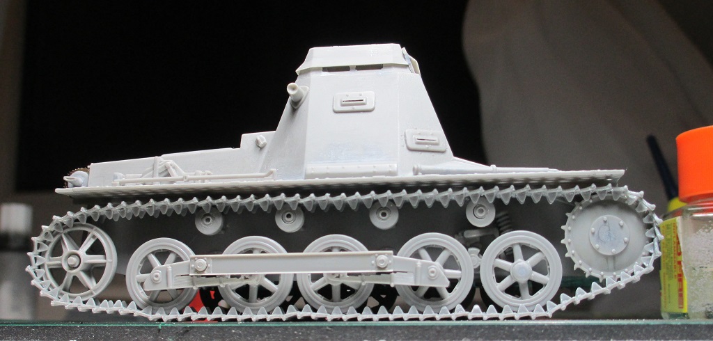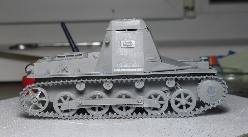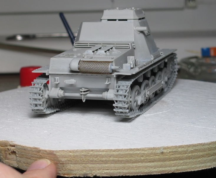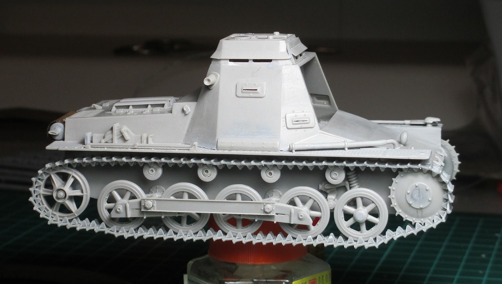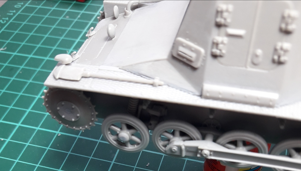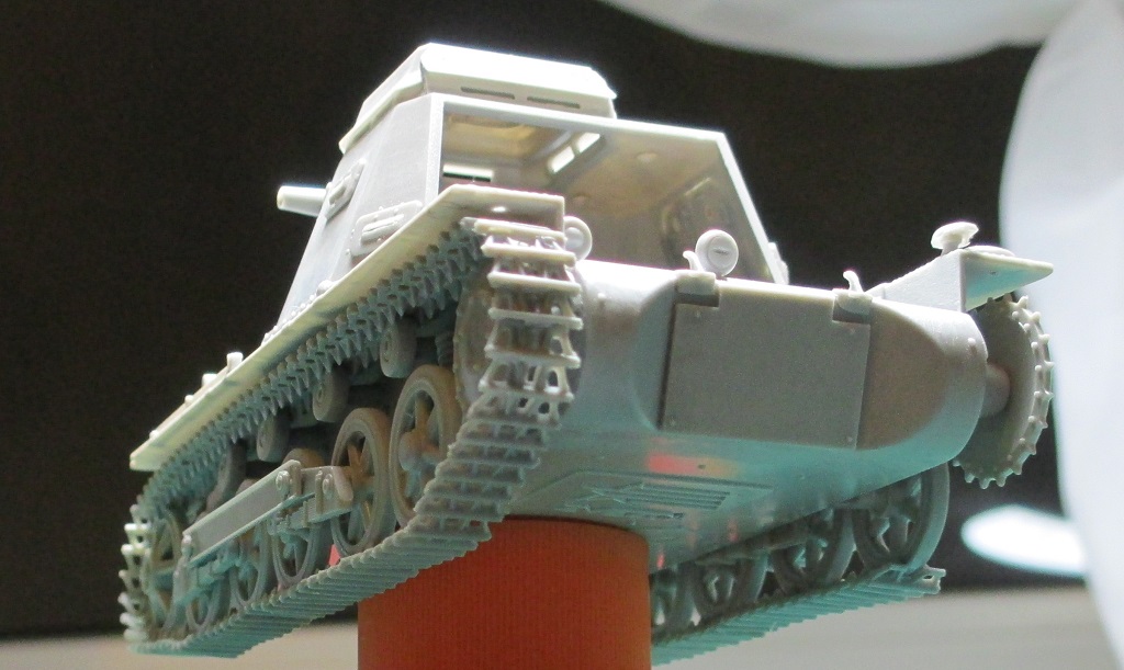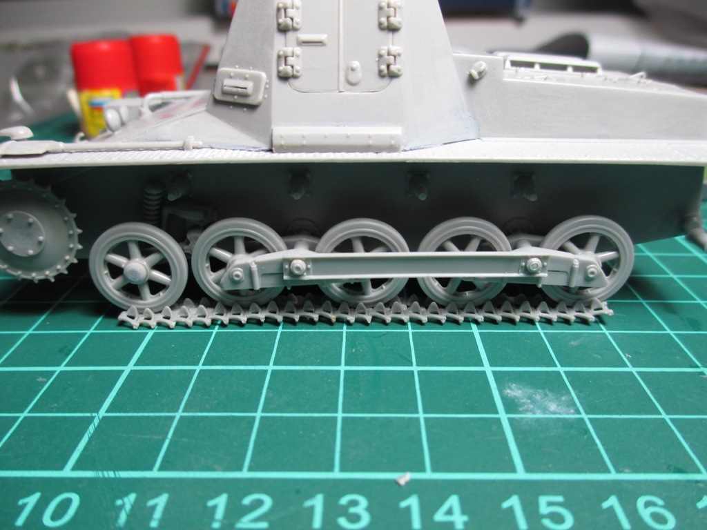 Касаемо сегодняшнего объема работ:собрал и отчасти установил ходовую .Когда дело дошло до звездочек выяснилось,что по центру имеются жирные при жирные утяжины.Пришлось обратится к помощи шпатлевки. И еще -на звездочках некоторый сдвиг пресс-форм,соскребается просто ножом.Поддерживающие катки не выставляю-их там целых восемь и особого интереса они не представляют.Собираются из двух частей влегкую.
