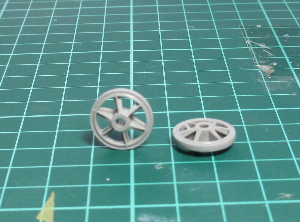 Комбашенка особого неудобства не представила-здесь состыковка терпимая,а вопрос незначительных щелей решается с помощью шпатлевки.Боковые створки вместе с петлями крепятся просто влет практически без подгонки.Далее немножко поколдовал над ходовой-собрал тележки .Тут пришлось повозится со шкуркой и надфилями т.к имелся незначительный облой и сдвиг пресс-форм.
