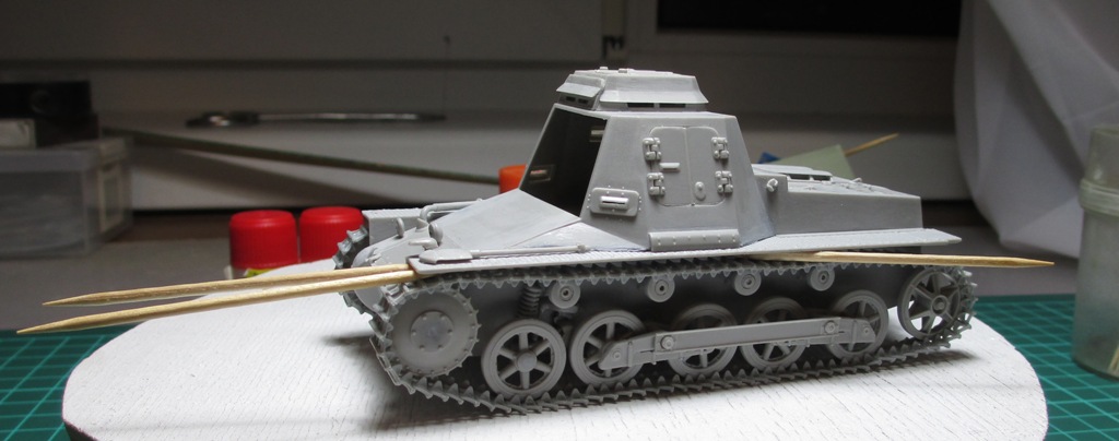 Сборка корпуса не представила особых неудобств.Только пришлось несколько "нарастить"снизу бронелисты рубки-уж больно большие щели получались при состыковке.