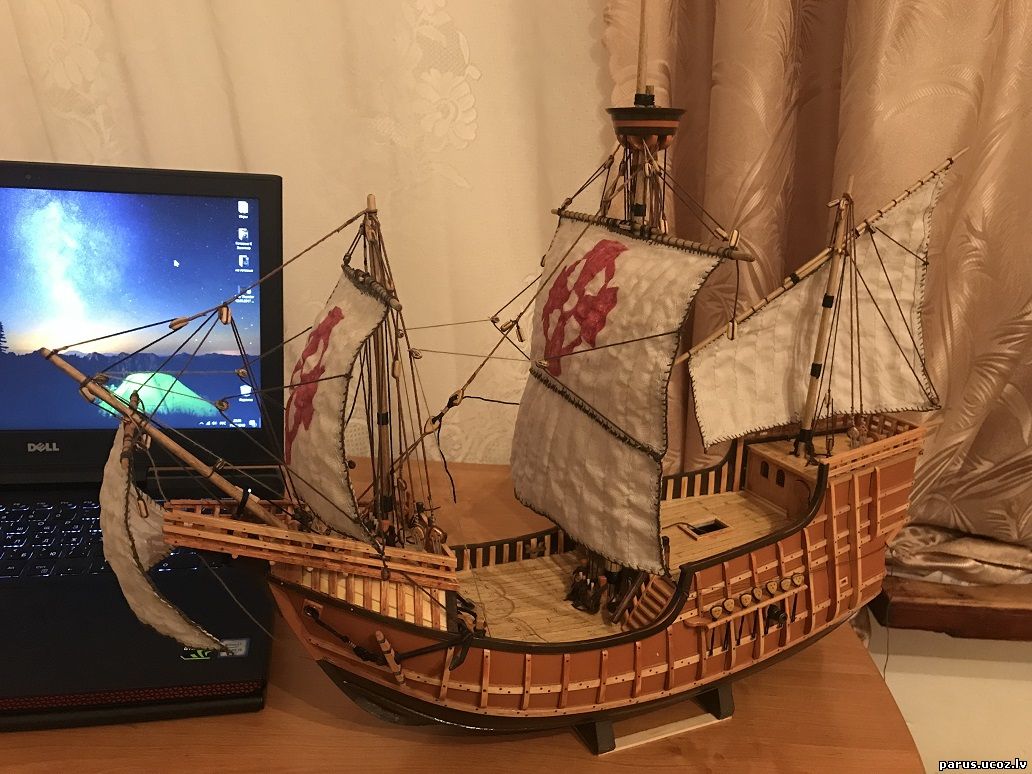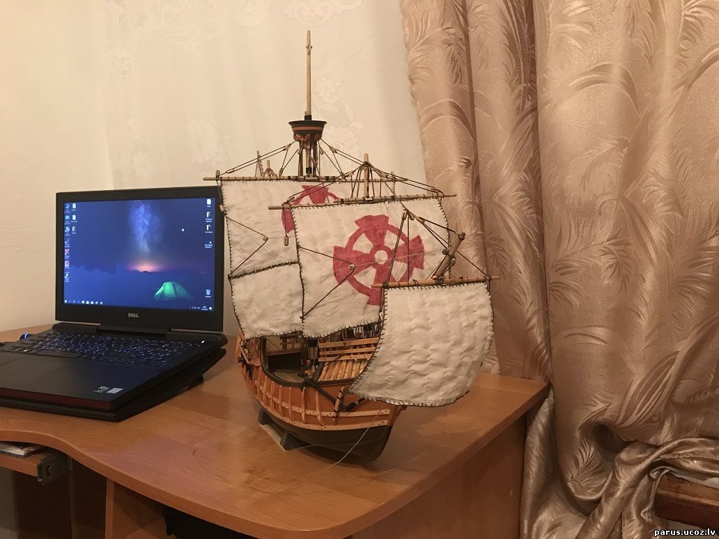 Да, знакомый кораблик, правда, на форуме "Парус" он запрезентован как "Санта Мария". И Борис Давыдович и я указывали на ошибки, сначала надо было установить стоячий такелаж, а потом браться за реи и паруса. А так получается, что дом начали строить с крыши. Правильно отметил Jokker - хозяин барин.