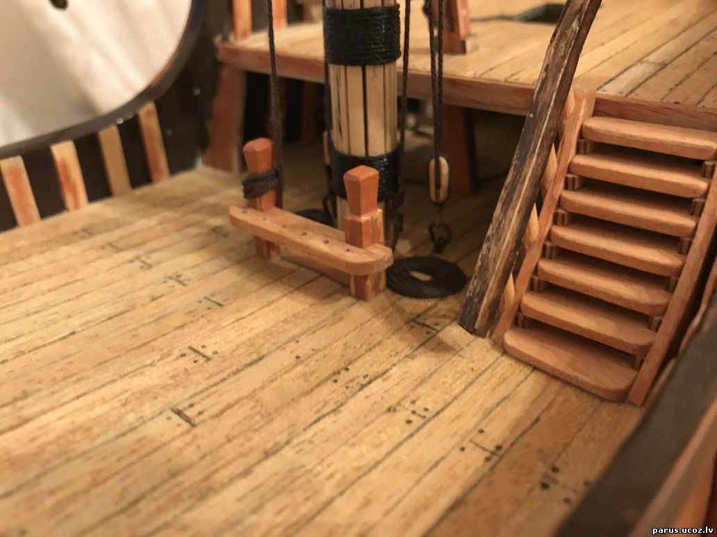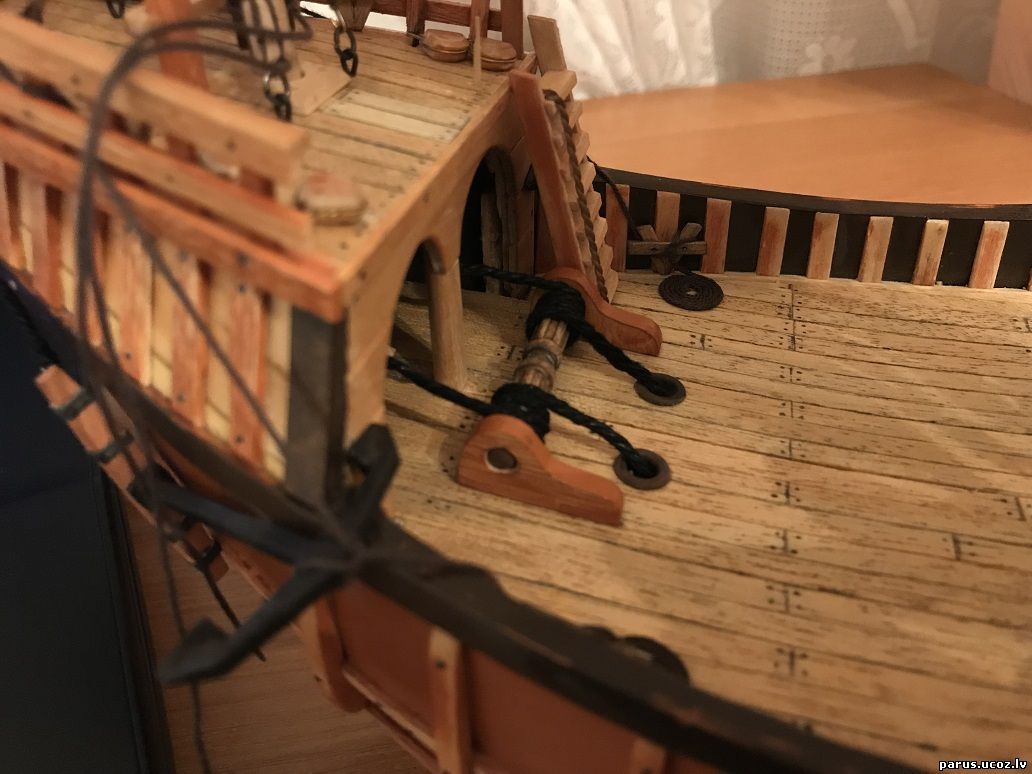 Приветствую. Не очень понял этот момент: уже навешены паруса и такелаж к ним проведен, стоят юферсы с вант-путенсами, ....а ванты где?