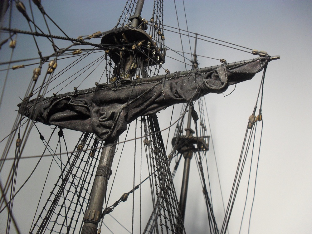 тем не менее, некоторые сомнения по поводу " реалистичности"... насколько я помню,из букварей, да и по фото реальных парусников...марсели и брамсели и т.д.,... если они убраны,то их реи должны быть максимально опущены к соотв.марсовым площадкам/до эзельгофтов...убранные марсели / брамсели подтянутые к топам... это - не правильно...