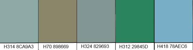 В палитре Hobby Color цвету FS 36307 соответствует H314, имеющий в RGB код #8CA9A3. Цвету RLM 02 (H70) соответствует код #898669.