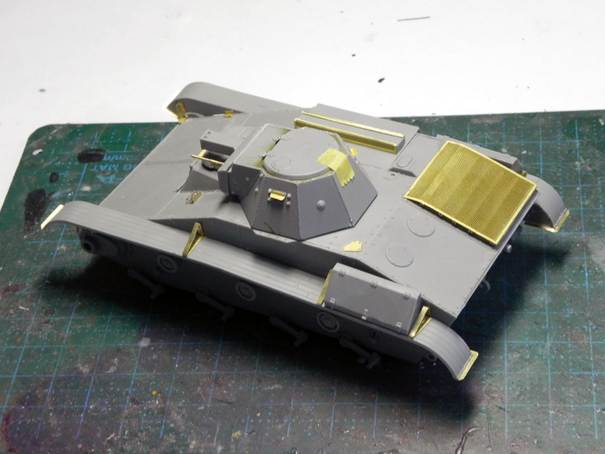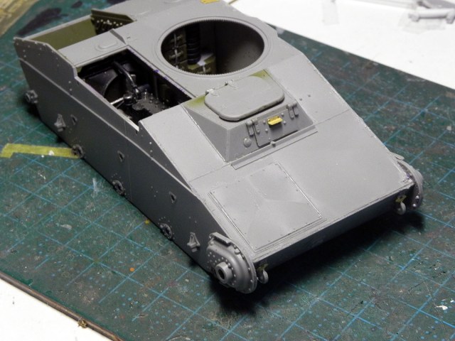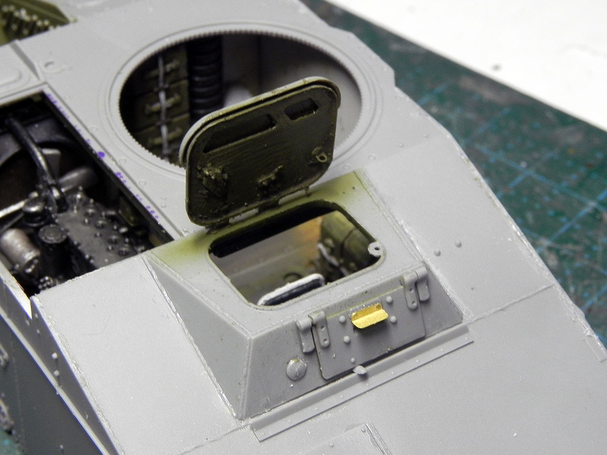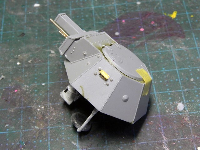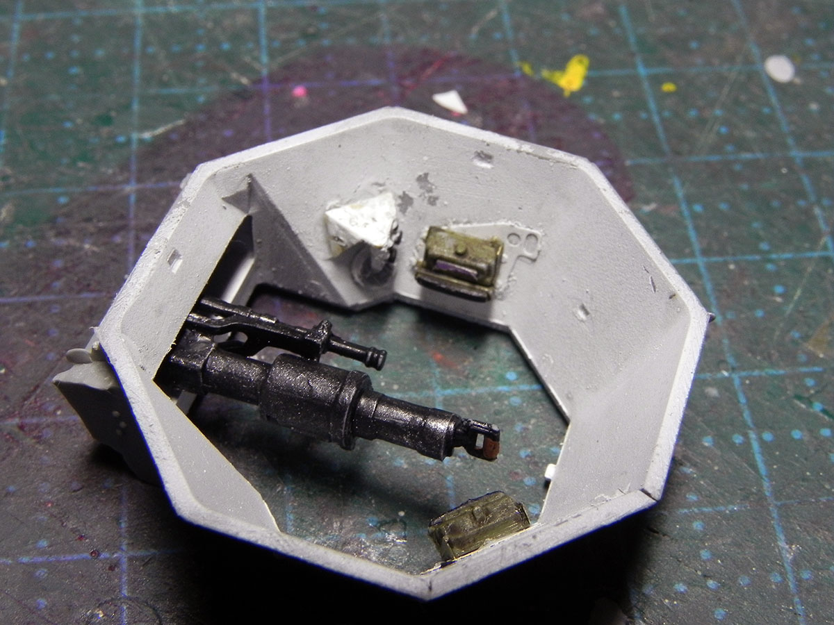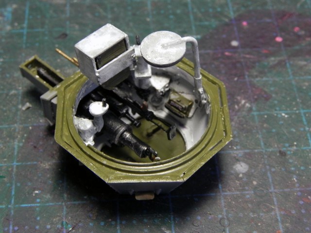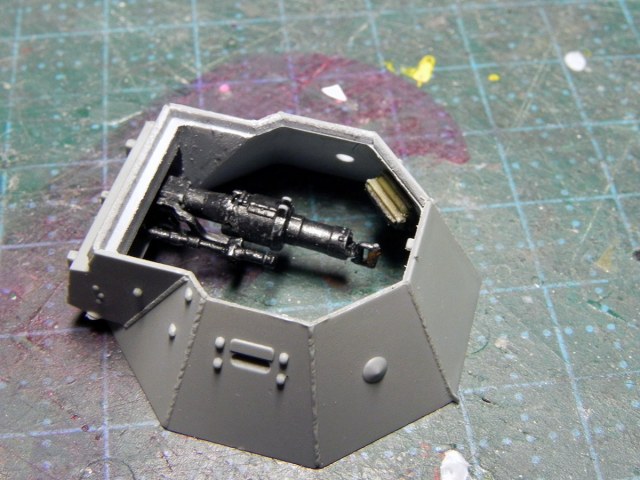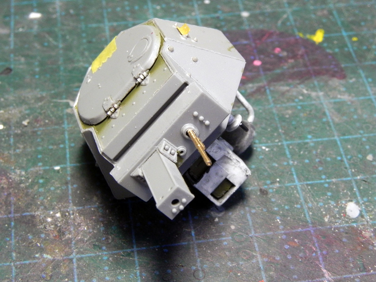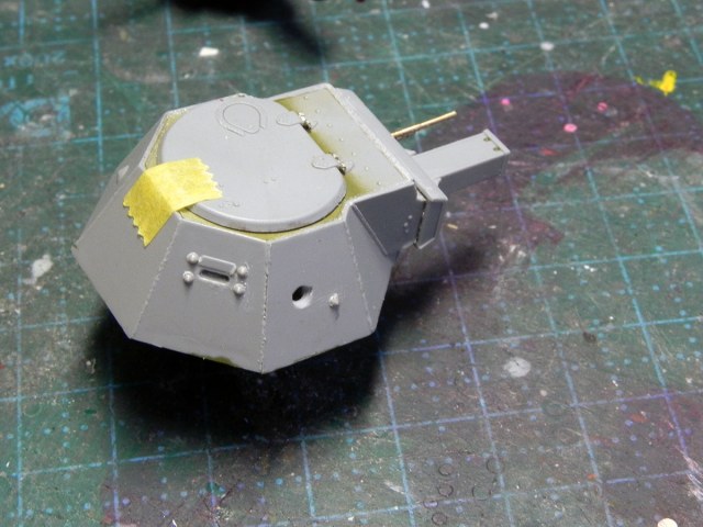 Закончил с башней. Точнее, почти закончил. На фото видно, что пулестойкие болты на маске надо поменять.