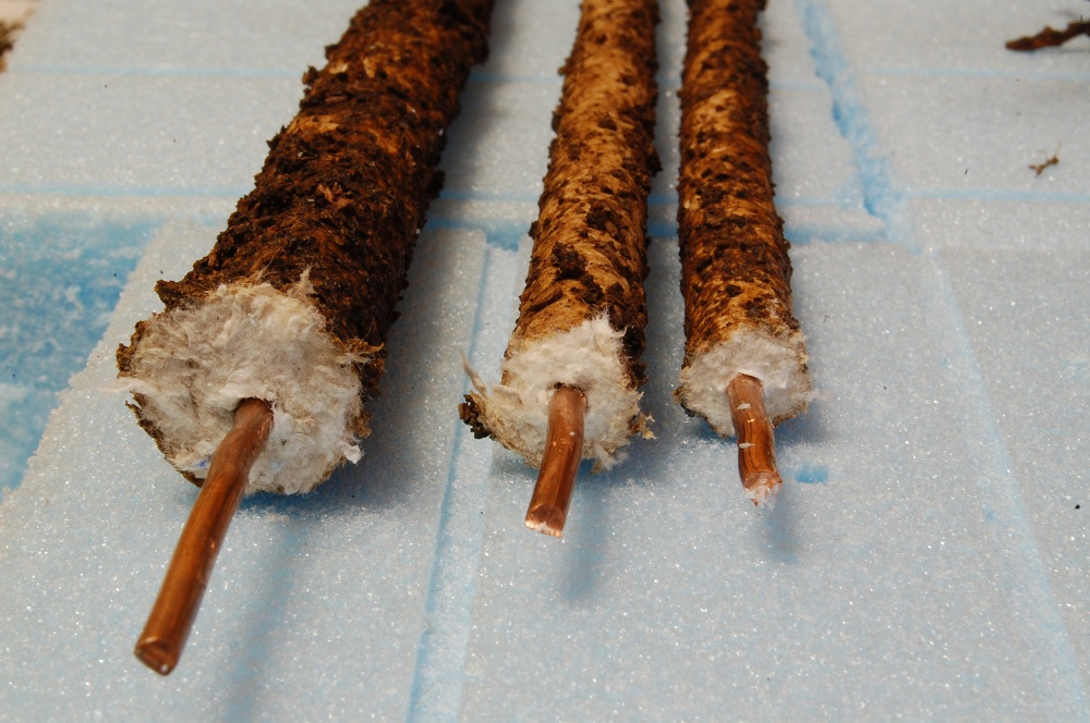 после этого покрыл ствол ниже веток ПВА и обсыпал его неокрашенными опилками и приклеил несколько кусочков сухих корней для имитации засохших веток