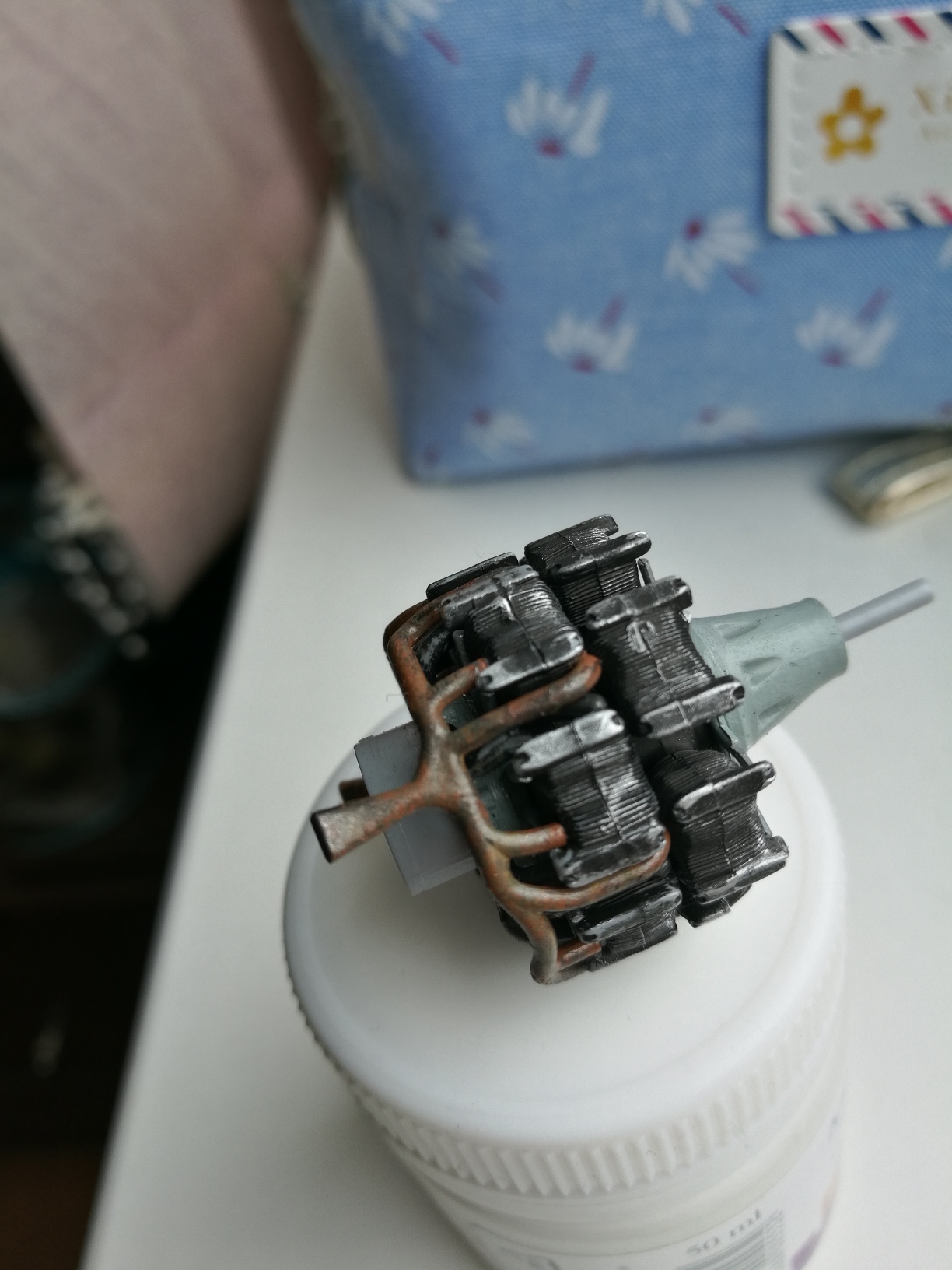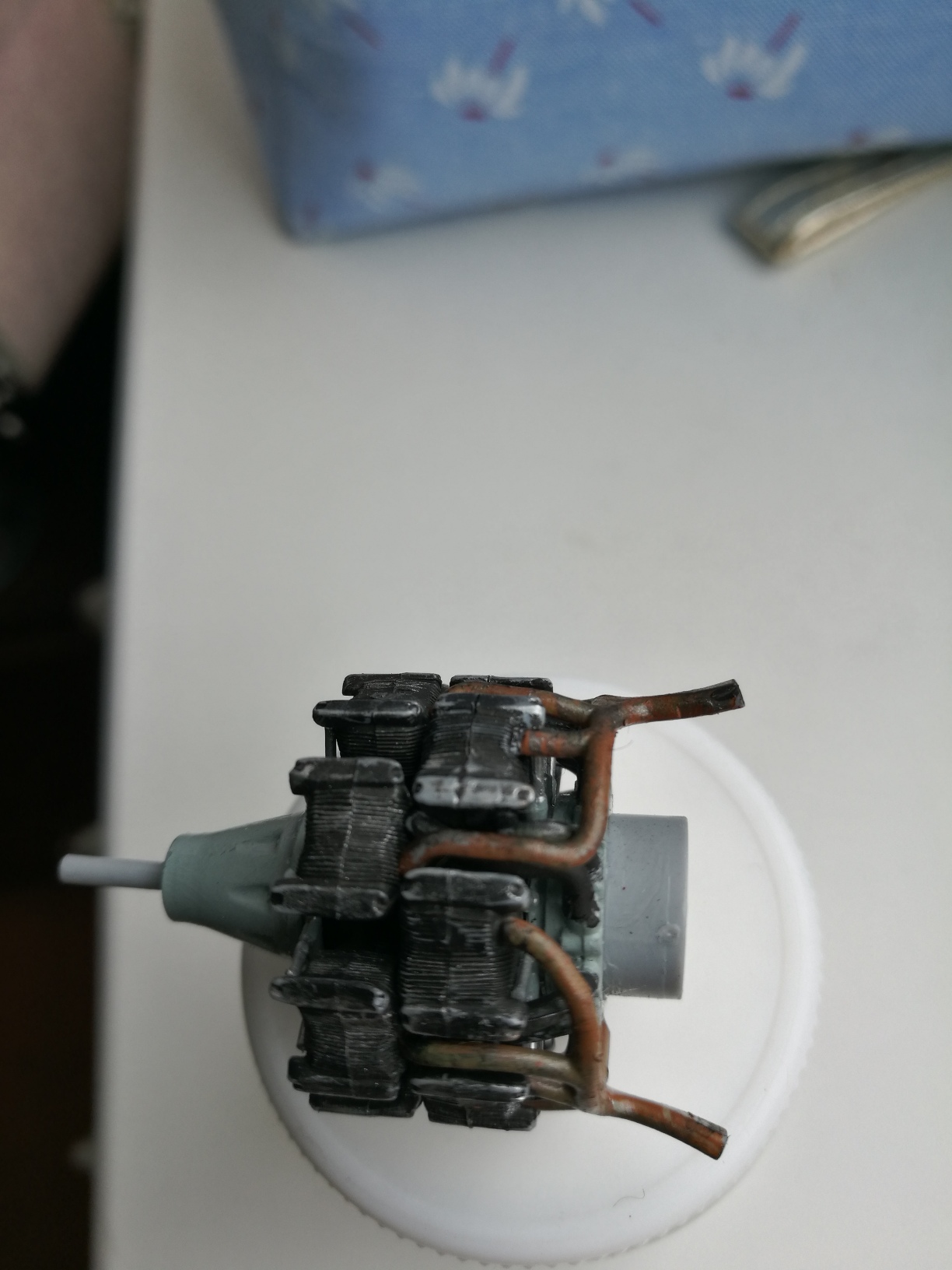 Доброго времени суток. Столкнулся с такой проблемой, собираю первую модель, ла 5, сборка началась с двигателя (в планах он наверное будет закрыт). При склейке составных деталей (они были покрашены заранее) мотор собственно немного облез, причём на мой неопытный взгляд красиво, я бы сказал реалистично. Вот собственно вопрос, как облезлые места аккуратно подкрасить, особенно обрешетку цилиндров