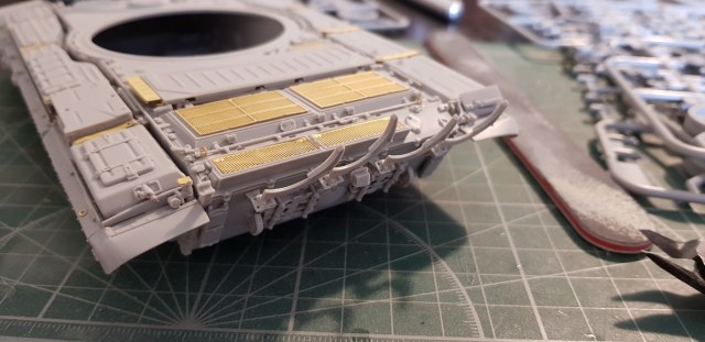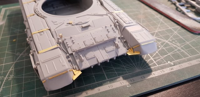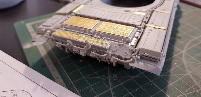 И вообще, отвлекаясь, делать модель по конкретному прототипу еще то удовольствие). Вчера, например, регил перед сном полистать еще раз фотки, увидел чтотна выюранном прототипе спереди установлен олин из трех анти-рпгшных щитков квадратной формы, почему то решил, что дудка их не дала в наборе, обшарил все магазины в поисках афтермаркета, изволновался, утром побежал рыться в коробке - ан нет, все на месте, дудка дает стандартный набор из трех щитков для каждой стороны. Уф, отлегло