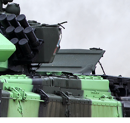 Еще отличий не мало: новые катки, гусеница с косыми грунтозацепами, "выхлоп" от В-92 и новые крышки ОПВТ на жалюзях