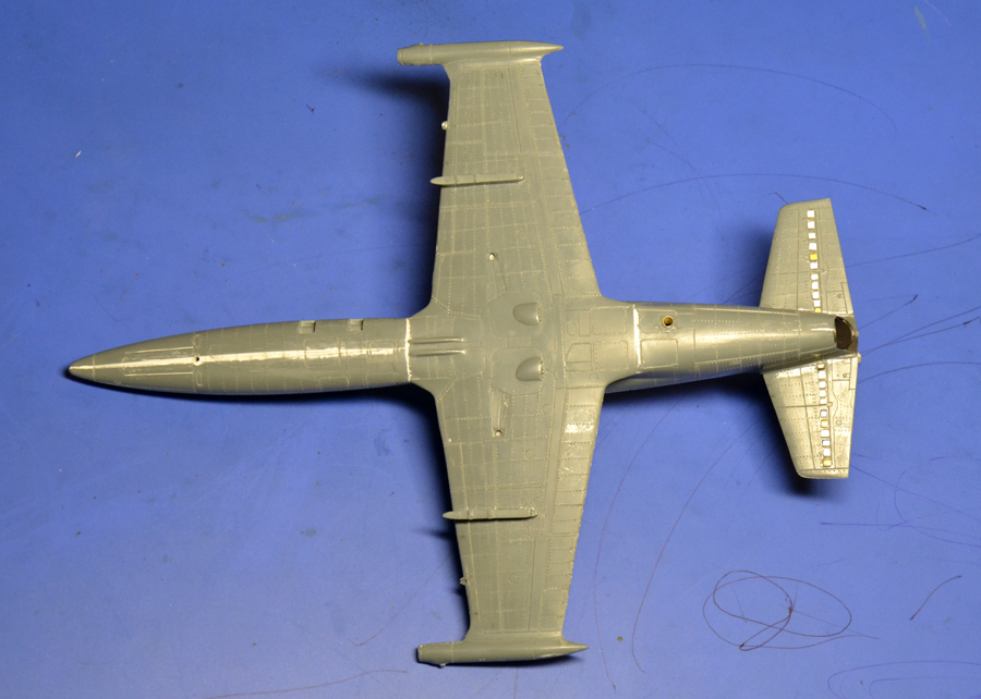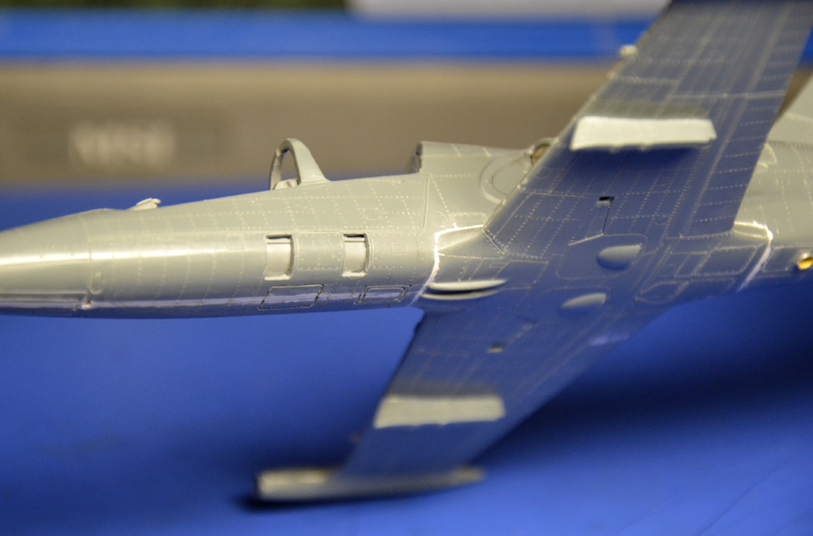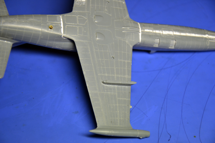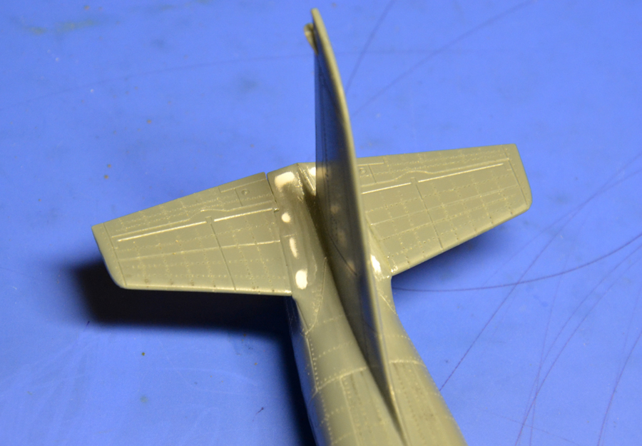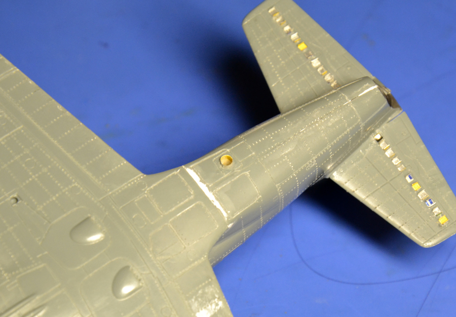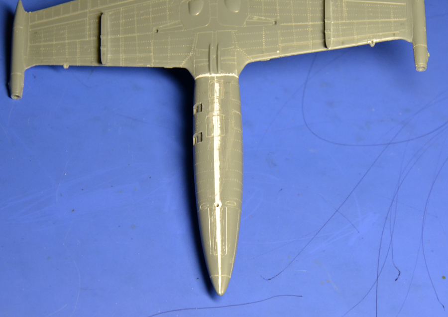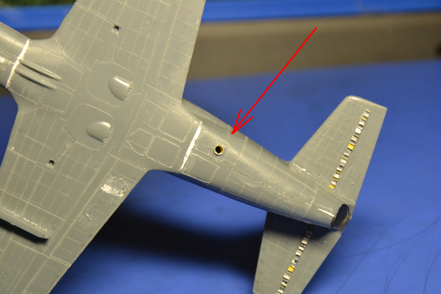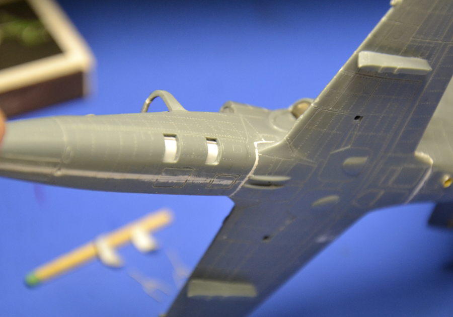 Снизу модель также была немного доработана. А именно - срезал и сточил нафиг те невнятные генераторы вихрей на стабилизаторах, которые дал производитель. Были вырезаны с пивалюминия и наклеены на суперклей