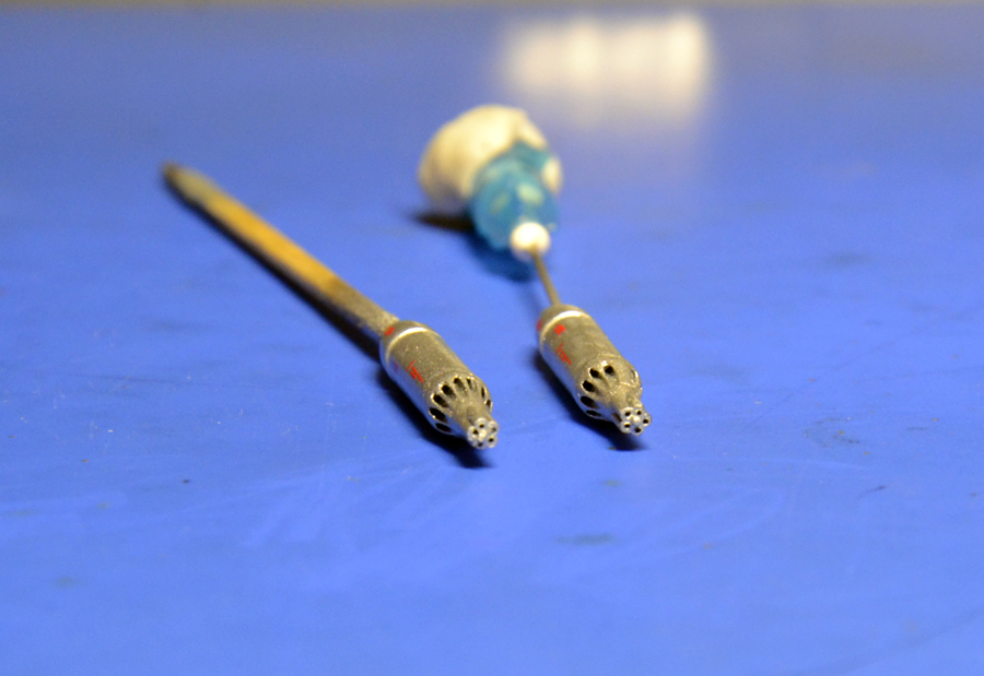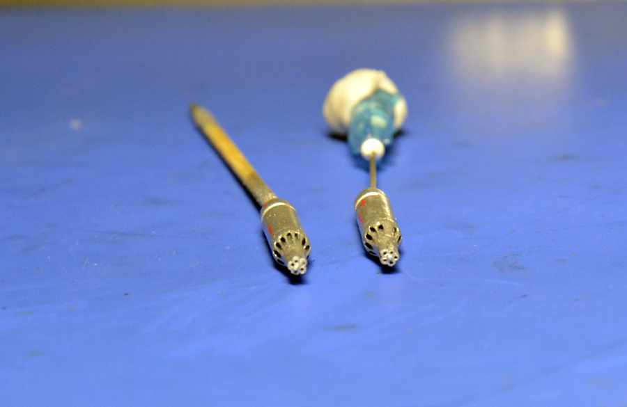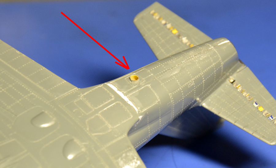 Высверлил и вклеил из кусочка пивалюминия, завернутого в трубочку (так как не нашел подходящей трубки) выхлоп турбостартера (вроде так он называется)