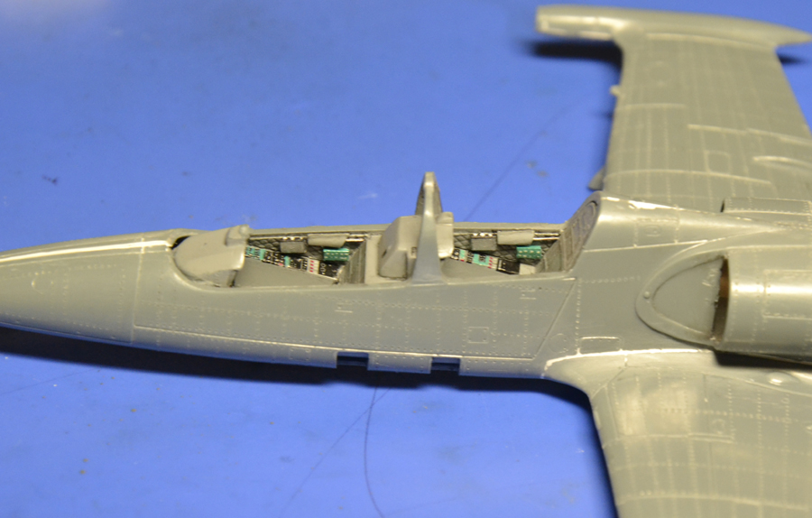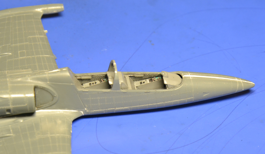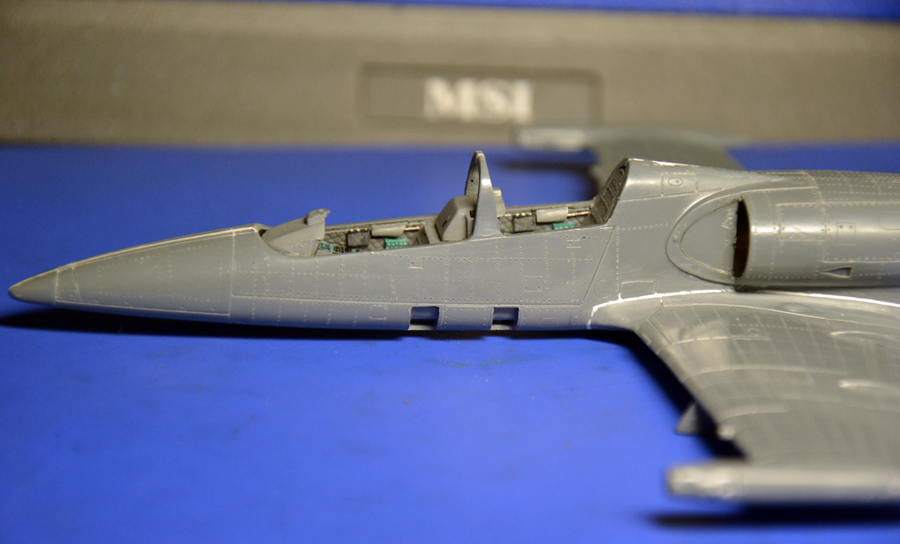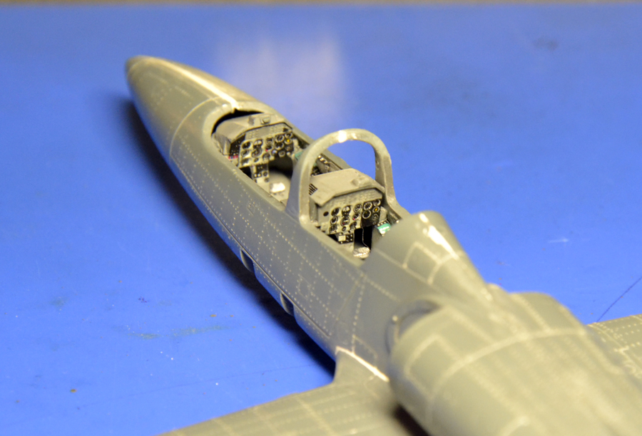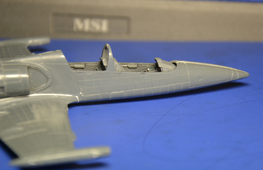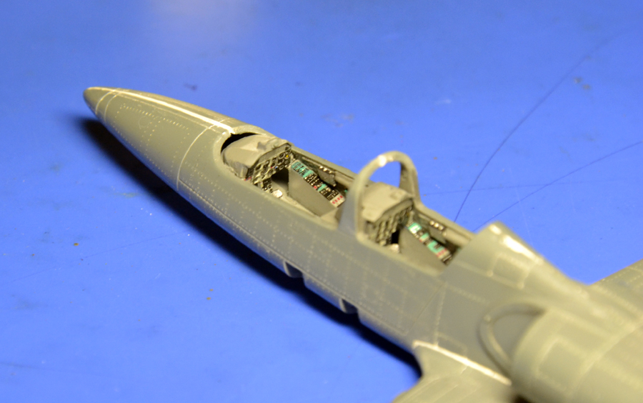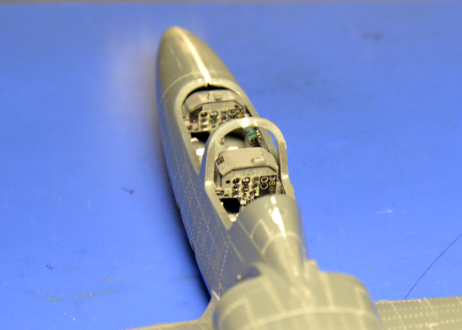 Расширил фюзеляж в районе кабины путем вставки пластика на обе его половины. Потом туже процедуру сделал с ванной кабины, расширив ее. Теперь кресла становились на свои места по ширине. Потом был долгий процесс подгонки и склаивания двух половинок, которые "упрямились" этому процессу. (процесс стройки я не фотографировал, поэтому буду акцентировать внимание на те участки, которые имеются на фото в настоящий момент)