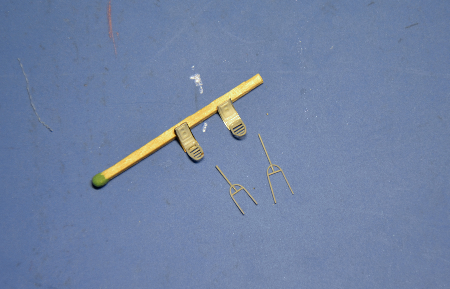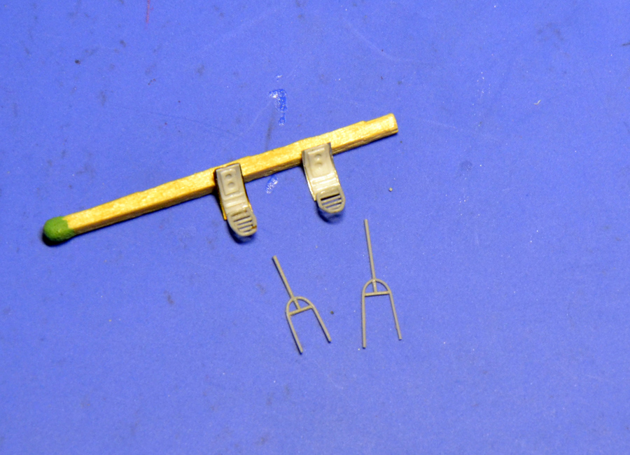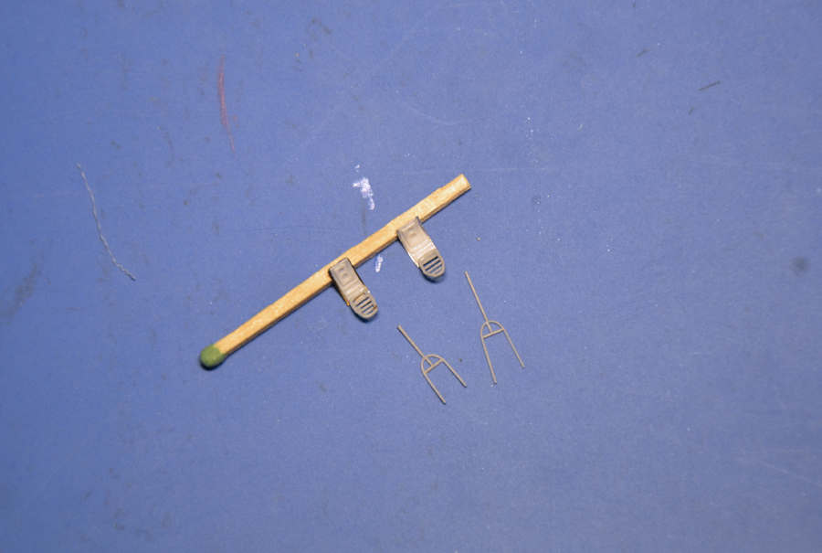 Потом занялся мелочевкой. Труднее всего было представить, смогу ли я сделать откидные подножки. Но как говорят: глаза боятся, а руки делают. В общем пивалюминий, лапширак и тянутый литник мне помогли в этом деле. Надо признаться, детали очень ажурные и мелкие, пришлось попотеть, но результатом я доволен.