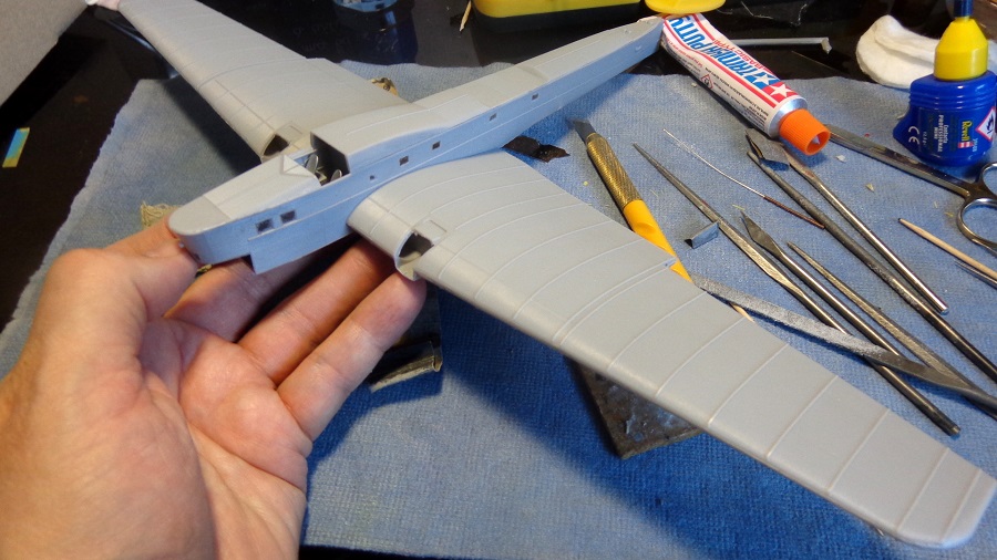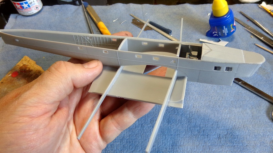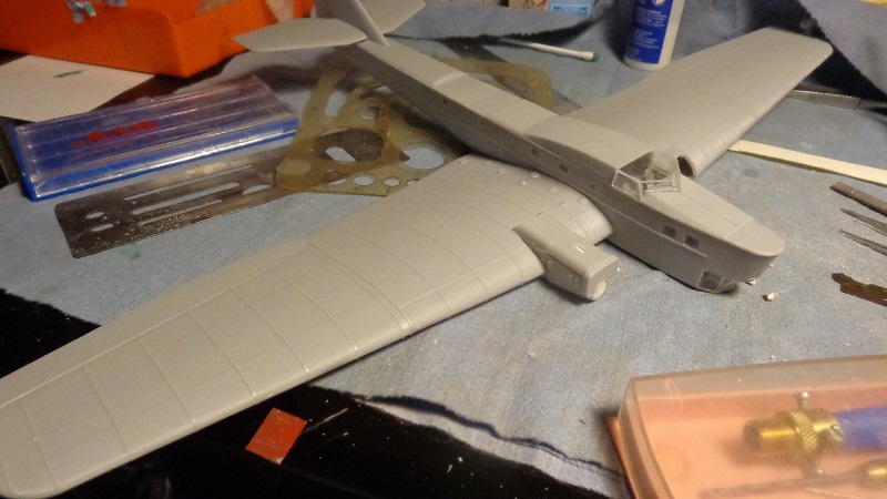 Продолжение рутинной сборки. Приклеил элероны, остекление. Остекление пилотской кабины как-то неудачно придумано Микро-Миром. Видимо была задумка " изобразить" сдвинутую форточку, но в реальности идея оказалась не исполненой. Лучше бы кабину дали одной деталькой, было бы удобней.