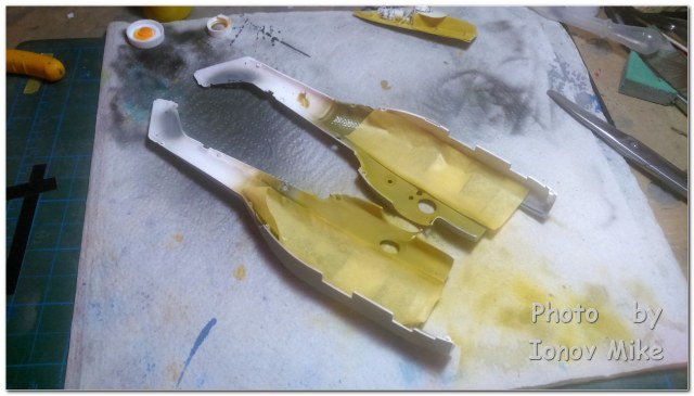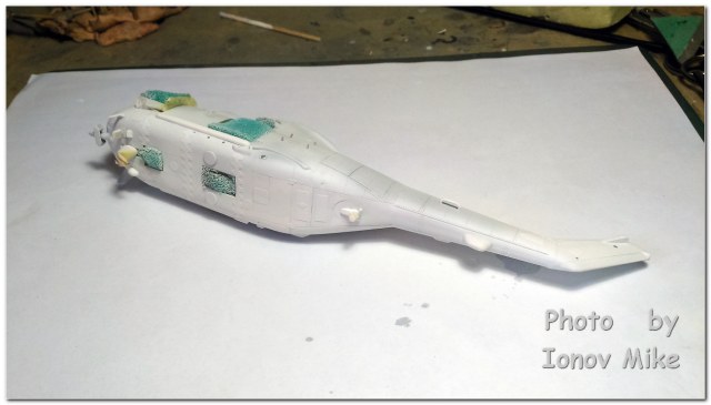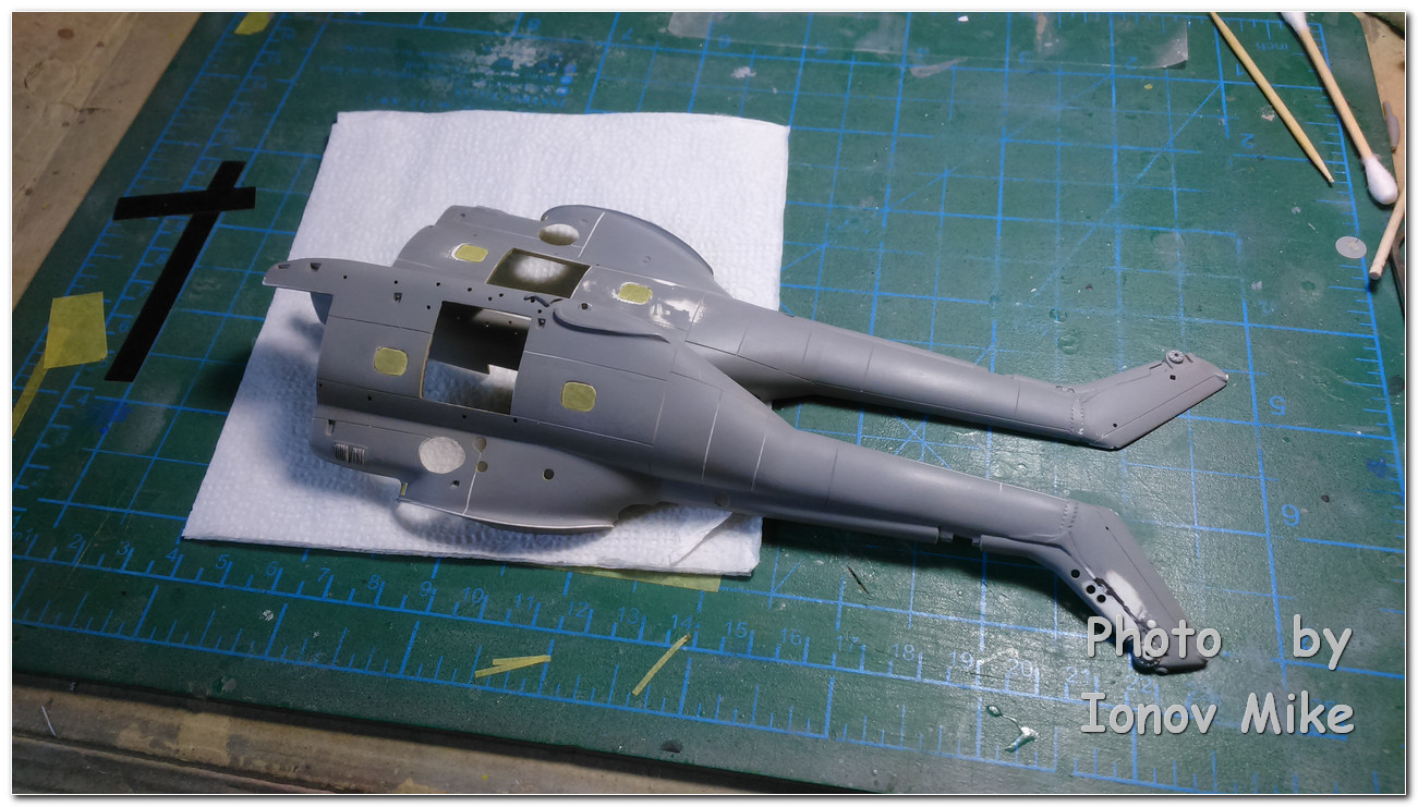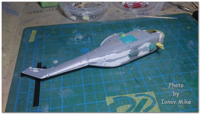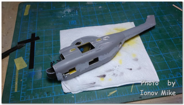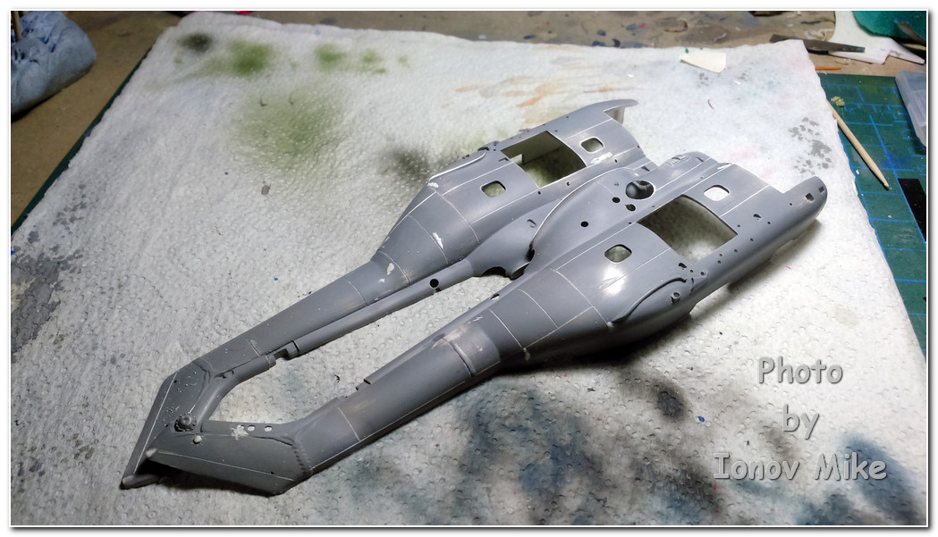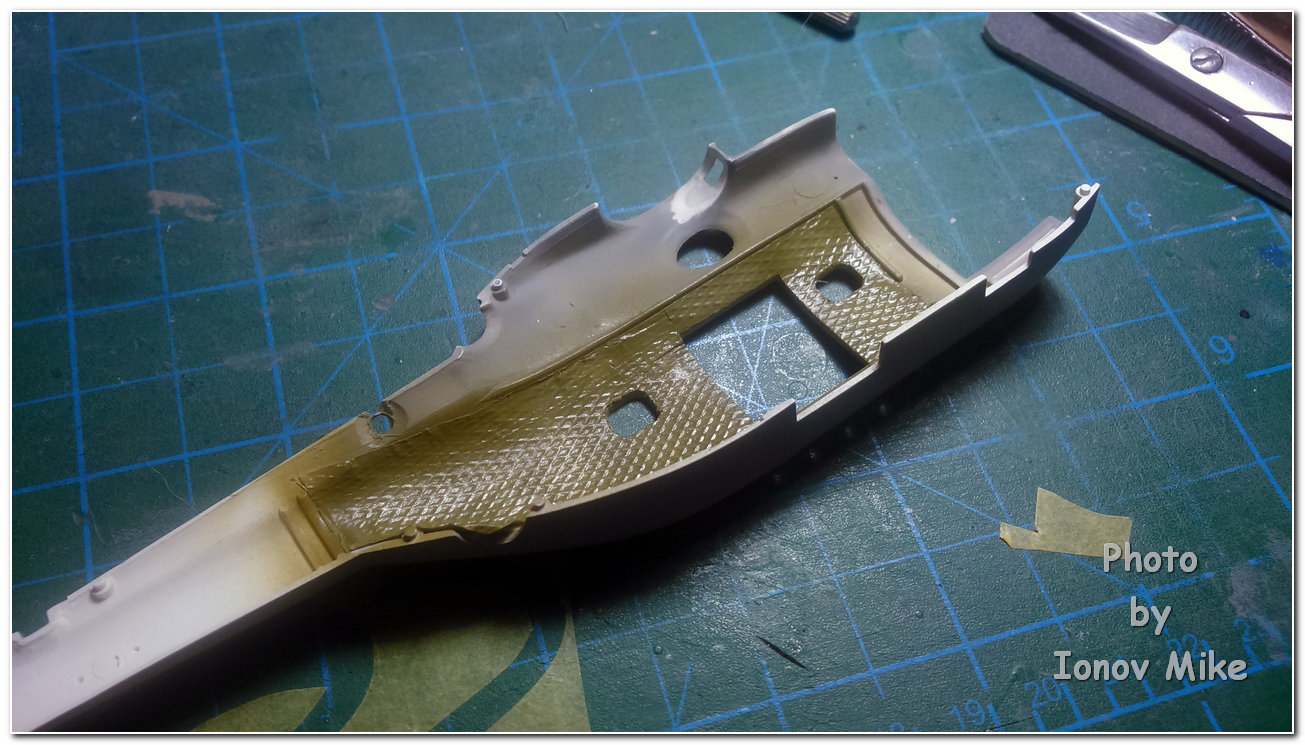 на днище и хвостовой балке буду дорезать потом, после склейки половинок фюзеля.
