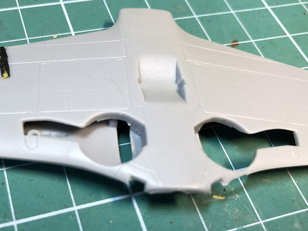 В воскресенье с утра удалось немного поработать. Была выработана концепция изготовления ниш шасси и работы выполнены, я бы сказал, наполовину. Сейчас изготовленные поверхности обработаны циакрином и подсыхают