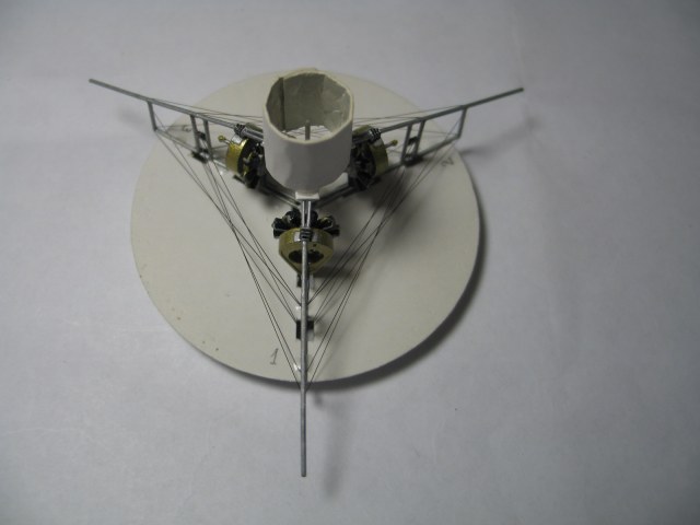 Остаётся добавить верхнюю часть конструкции - несущие винты и "корзину"-гондолу наблюдателя.