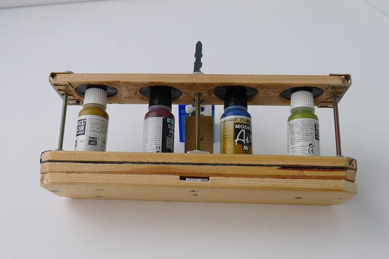 Так как, увы у меня пока получается больше пилить чем красить, а вся химия как известно без использования уходит в осадок. И последующий процесс приведения её в порядок, а именно тряска каждого пузырька отдельно не сильно радовал. Поэтому постоянно пытался как то облегчить это занятие.