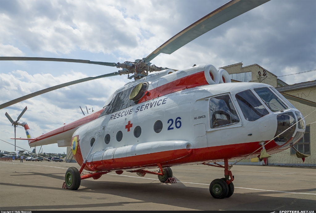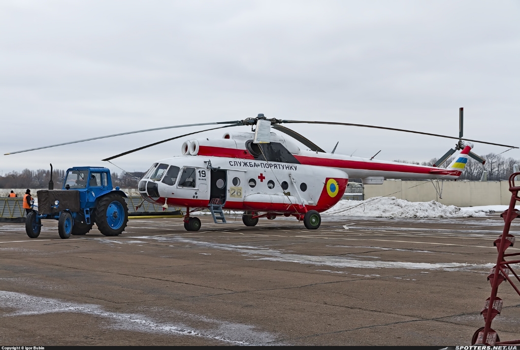 Данных по прототипу не особо, но думаю фоток хватит, чтоб правильно покрасить. Сама машина была некогда Ми-8 Т, теперь, после модернизации на Киевском заводе 410 Гражданской Авиации, по заказу ГСЧС, и по проекту Запорожского предприятия МоторСич, с использованием их же движков, стала Ми-8 МСБ. По техническому заданию машина не оборудовалась какам либо медицинским оборудованием, требовалось лишь установить новые моторы, авионику, и лебедку (данная информация нарыта в сети, все ли соответствует действительности, утверждать не берусь, но на некоторых снимках водны стандартные для 8-ки лавки). Передана ли машина ГСЧС, или все еще принадлежит 410-му заводу, сказать затрудняюсь. Б/Н 19 - это по идее уже номер машины ГСЧС, б/н 26 - это номер, с которым машина проходила летные испытания во время модернизации. Какой будет моя модель буду определяться по ходу стройки, еще не решил.
