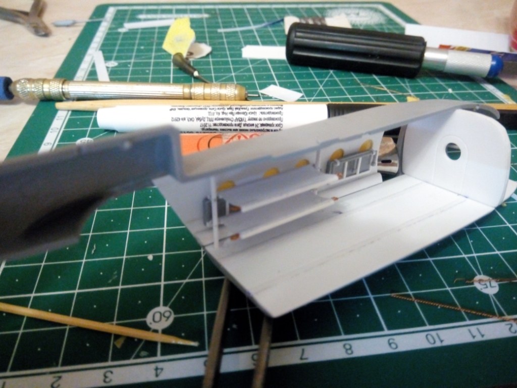 Начал с того, что решил снести наружный клеп, заодно накатать новый и поправить крой. Ну и за компанию дорабать те жлементы, которые не отвалятся в прцессе сборки. Пока обрабатываю борты, мне удобней работать с ними при еще не собранной модели. Хвостовую балку, "брюхо" и верх кабины буду обрабатывать уже после соединения половин фюзеляжа.