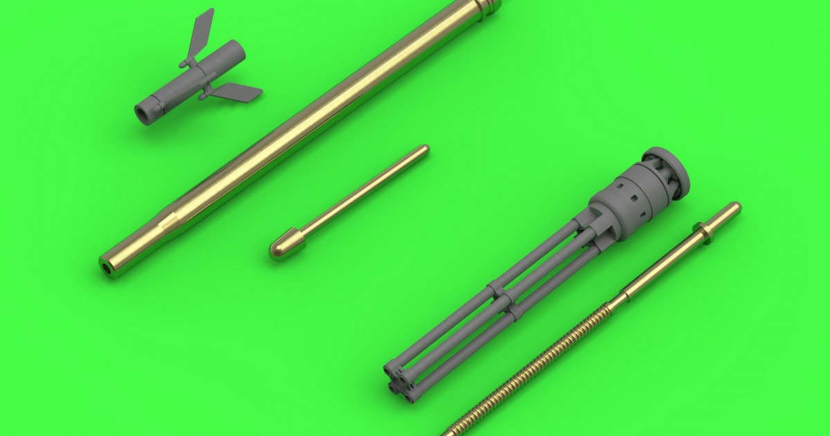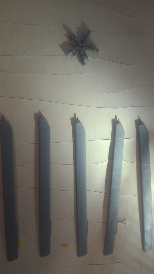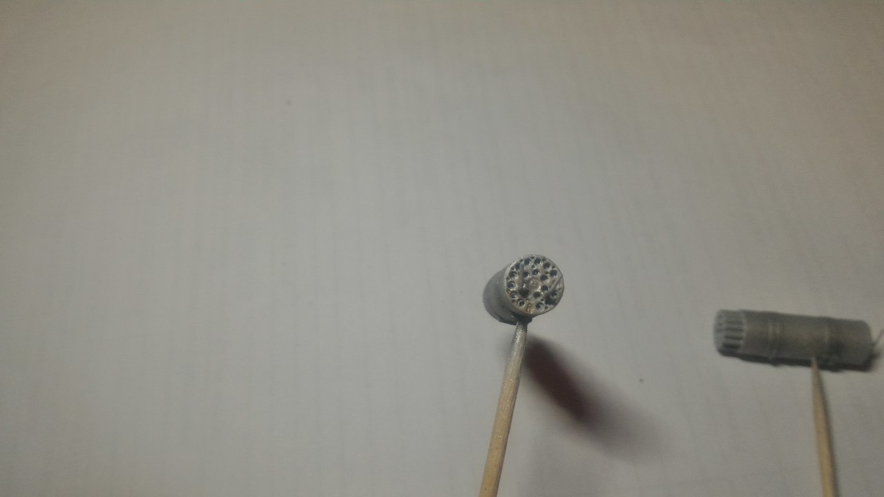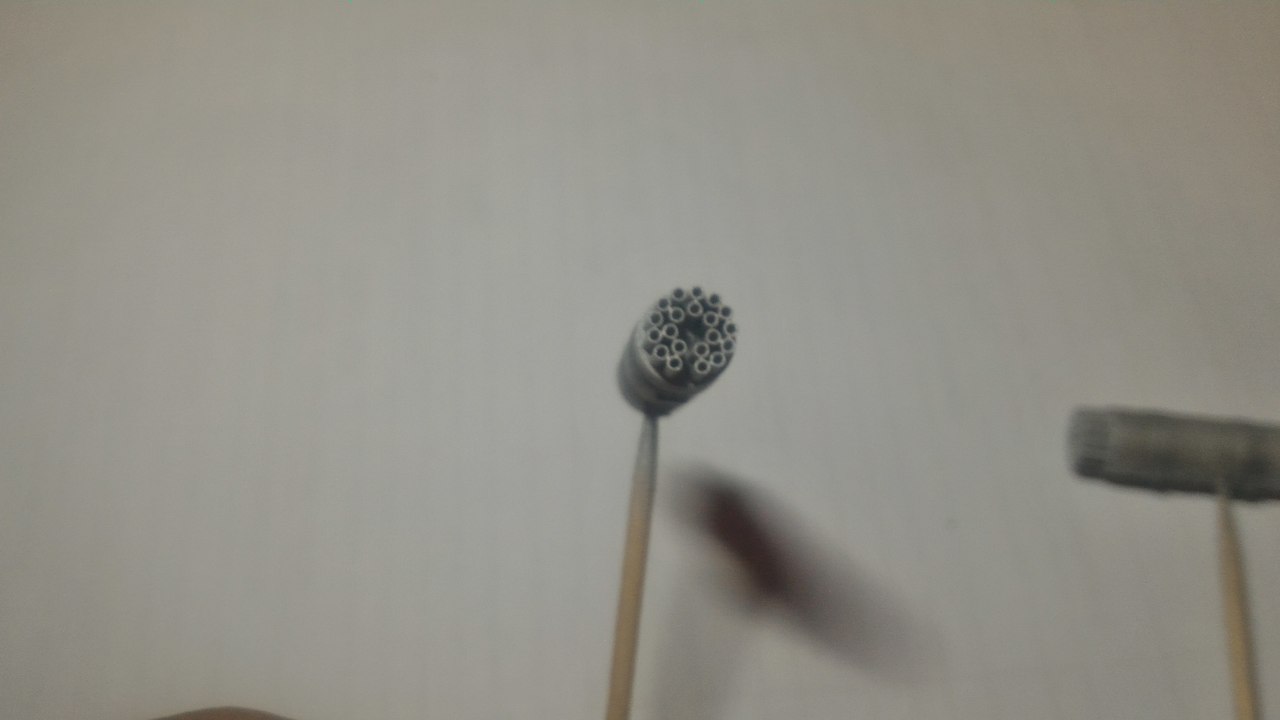 Пулемёт состоит из двух частей- ось, на которой вращается блок стволов, является латунной и, собственно, сам блок стволов, изготовленный то ли из смолы, тли ещё из чего..На будущее, кто захочет приобрести, имейте ввиду, товарищи, материал чрезвычайно хрупкий, очень осторожно надо работать . Штатные (изкоробочные) стволы были удалены и заменены на афтерные. Стоит отметить, как я и говорил выше- копийность достойная- ось имеет насечку, как и настоящая, стволы высверлены. ПВД я при монтаже немного подпортил, как писал выше, пришлось изготавливать лепестки самому.В остальном- опыт получен, для "Д-шки" я заказал ещё один комплект, постараюсь более аккуратно в следующий раз. Кстати, в прошлый раз я освещал проблему "утраты" сегмента ЭВУ, и, как и писал, решил я эту проблему покупкой ещё одной коробки. По-немногу начал собирать вооружение на будущий вертолёт, в частности блоки УБ-32 и направляющие Фаланги-ПВ, между делом, так сказать.. если успею загрунтовать и окрасить, выложу, так, в частном порядке) А в будущем, по мере продвижения процесса сборки "В-шки" к завершающему этапу, начну, по-тихоньку, параллельный запил.
