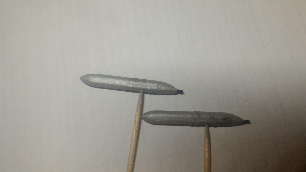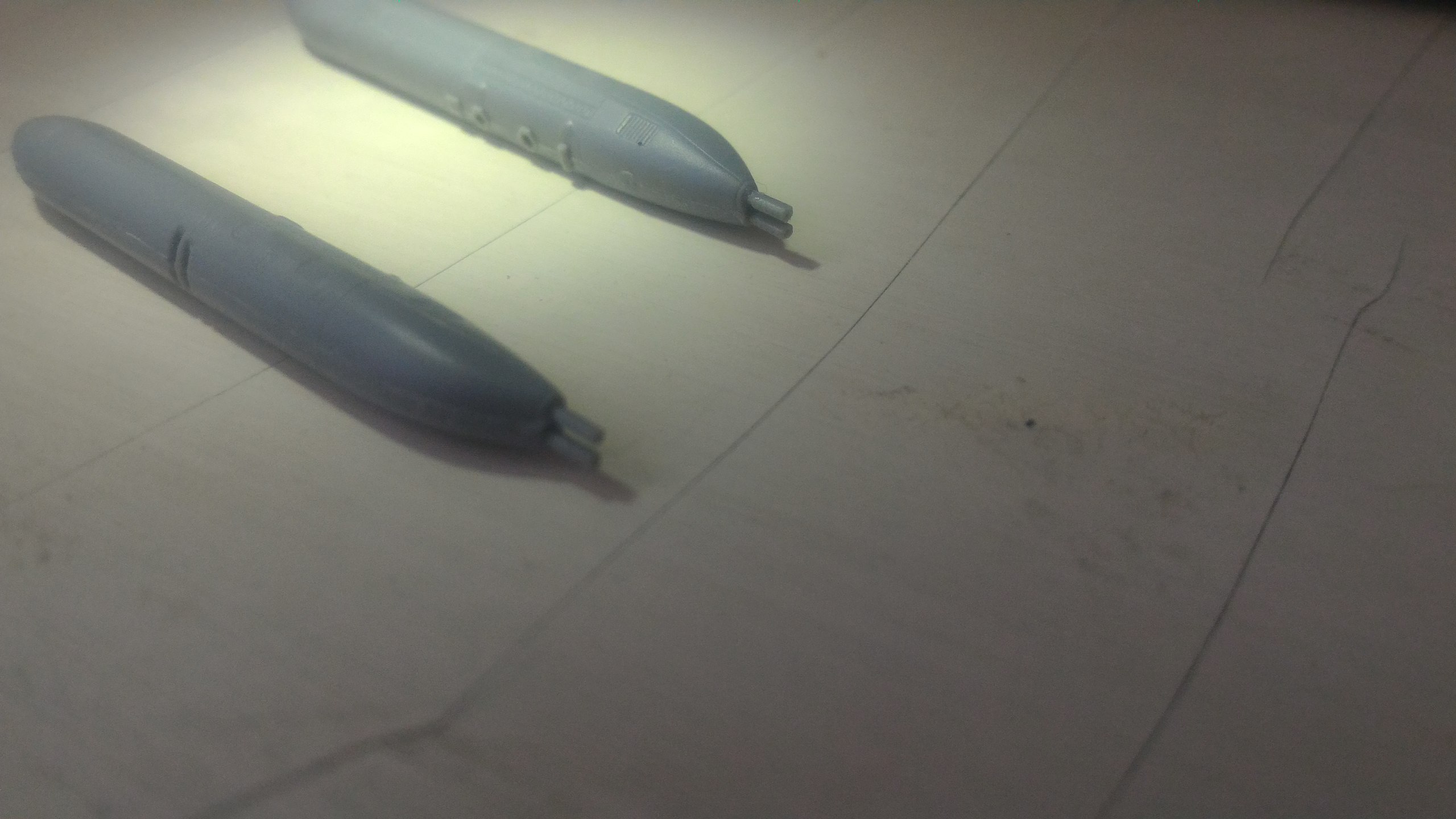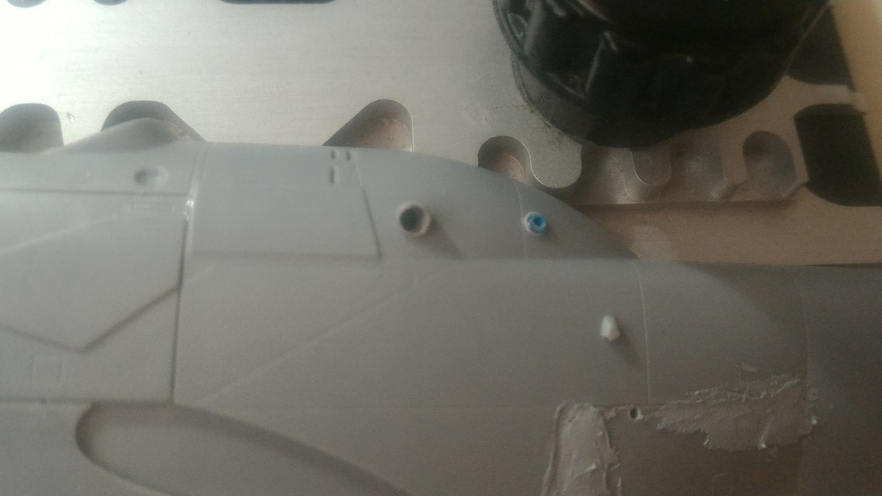 Что касается остального вооружения- добавил лишь ручки на крышке блока НАР. В остальном, лишь загрунтовал, слегка "пропрешейдил", ибо в таком масштабе, лично моё мнение, главное с этим не перестараться. Декали наносить пока не стал, отложу этот момент на завтра, ибо уже стемнело и боюсь их запортачить, плюс ко всему, глаза подустали немного.