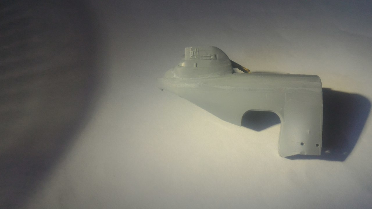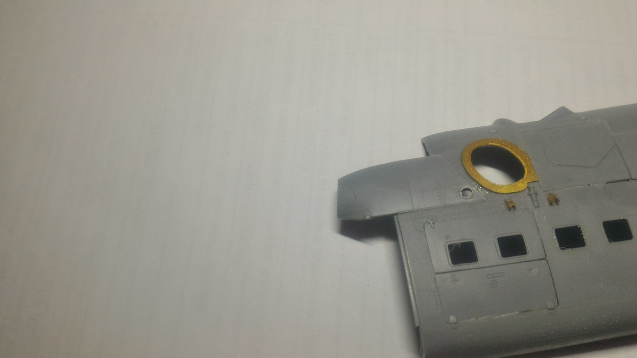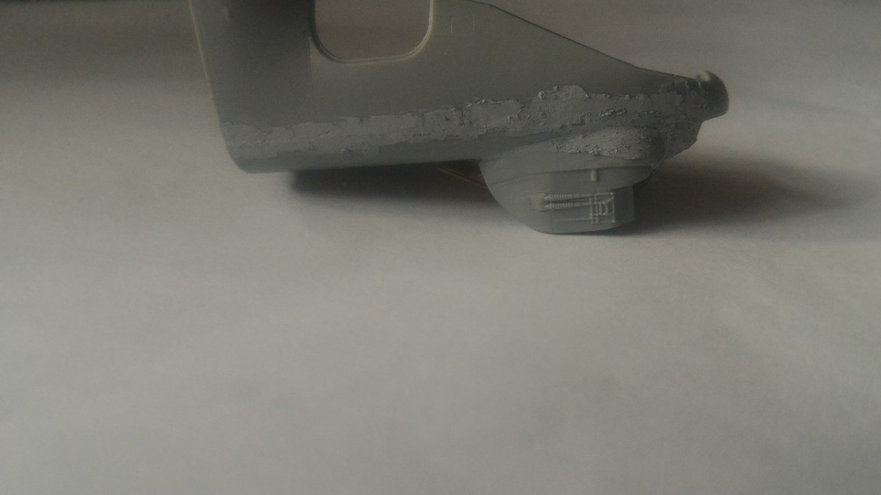 - Подсобрал носовую часть слегка. Выявилась проблема: членение деталей таково, что шов проходит не по линии расшивки, оттого страдают лючки, которые придётся восстанавливать. Также придется восстанавливать после полной сборки деталей корпуса в носовой части дверцы доступа к УСПУ-24, так как они замылятся, к бабке не ходи.