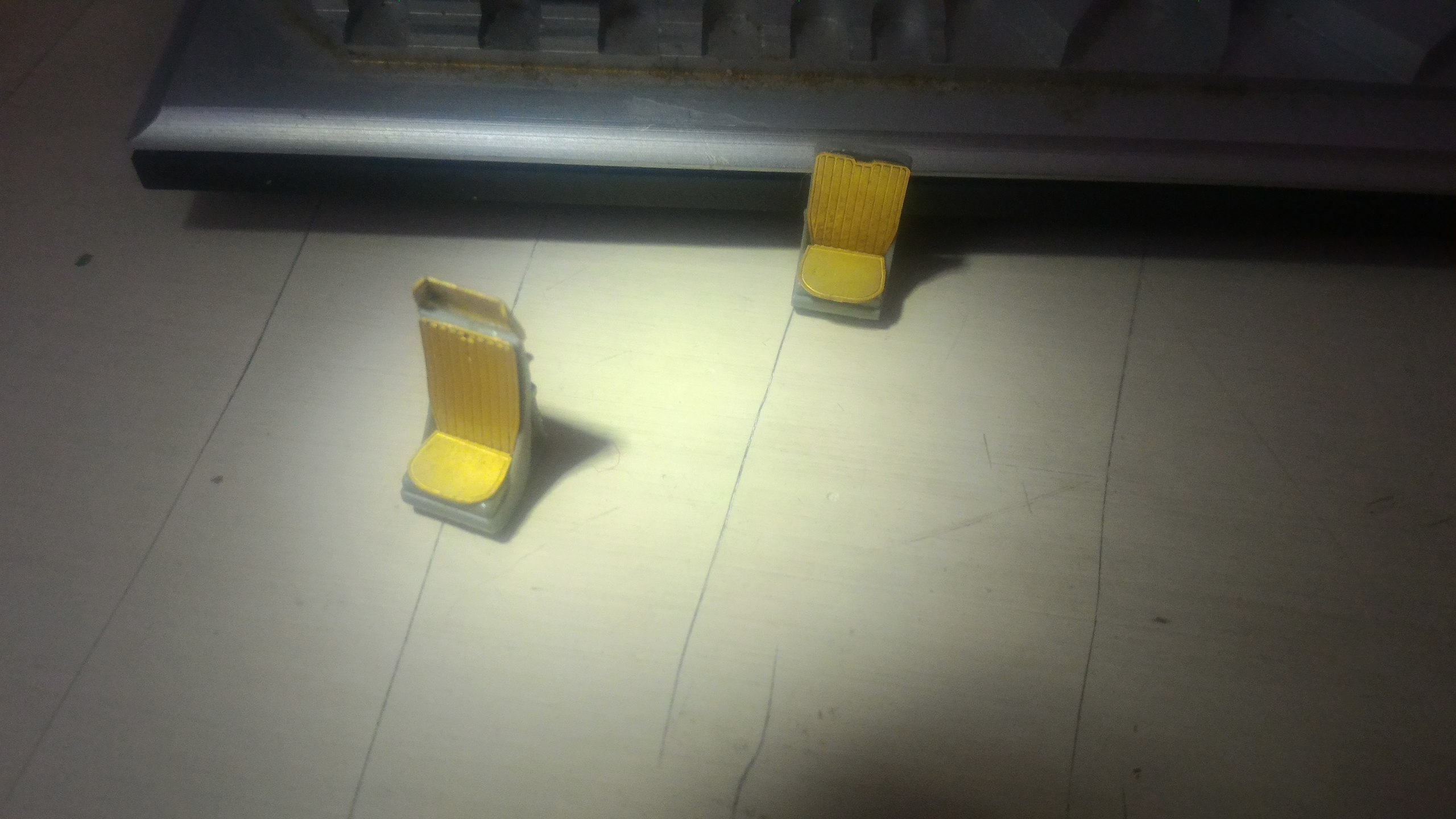 Далее- кабина пилотов. Не установил приборные доски и панели с тумблерами ибо их затруднительно будет окрасить в последствии. Так как в планах приобрести нормальный аэр, выбор пал на фирму Inked, а Jas на дальнюю полку пойдёт. Поэтому, пока аэр не придёт, моменты, связанные с покраской я буду максимально откладывать, занимая время сборкой и подгонкой деталей травления.Так же, после окраски будет добавлена прозрачная плёночка на ИЛС командира.Доработал травлом кресла. Подсобрал пилотов в черновую. Переднего немного доработал- довернул, так сказать, голову ещё больше влево. В последствие, есть задумка удалить пластиковые наплывы на ЗШ, которые имитируют тонированное забрало на самостоятельно изготовленные из фотопленки, дабы иметь возможность выполнить их в опущенном положении, скажем.