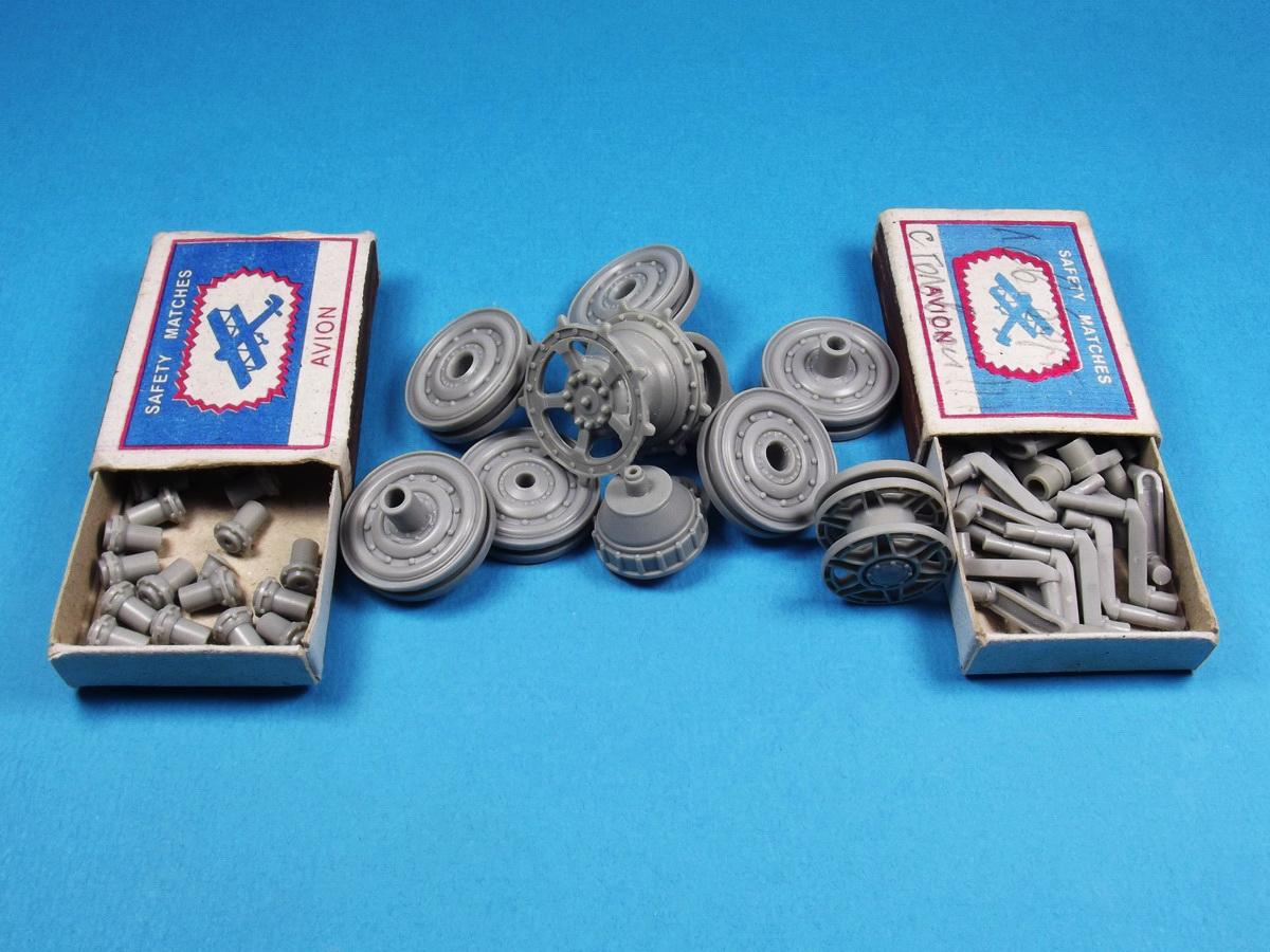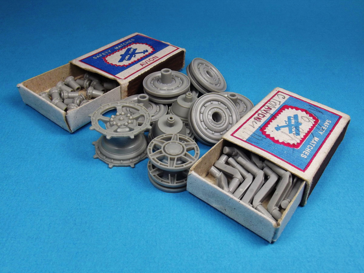 Вообщем, справа в коробке лежат готовые балансиры, слева-крышки ступиц, а между ними сами катки. Вот такой сегодня отчет. Кто надумает последить за этой "Сказкой", сразу надо предупредить-запасайтесь терпением-будет она дОлгой!