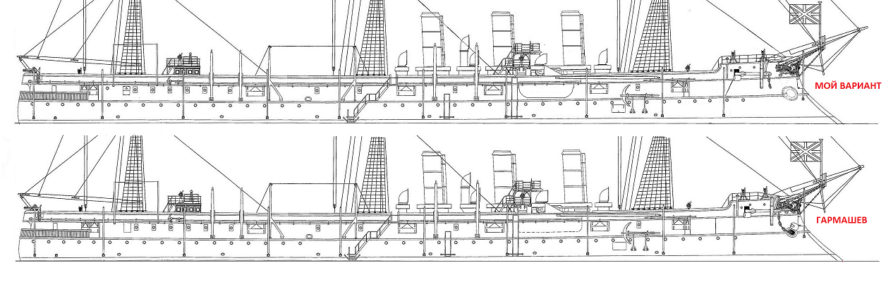 Ну, у Кондратенко напечатаны копии подленников, а Гармашев, по этим подленникам деле свои чертежи. Но проверять надо всё по фотографиям, корабль постоянно видоизменялся в деталях в разные периоды службы.