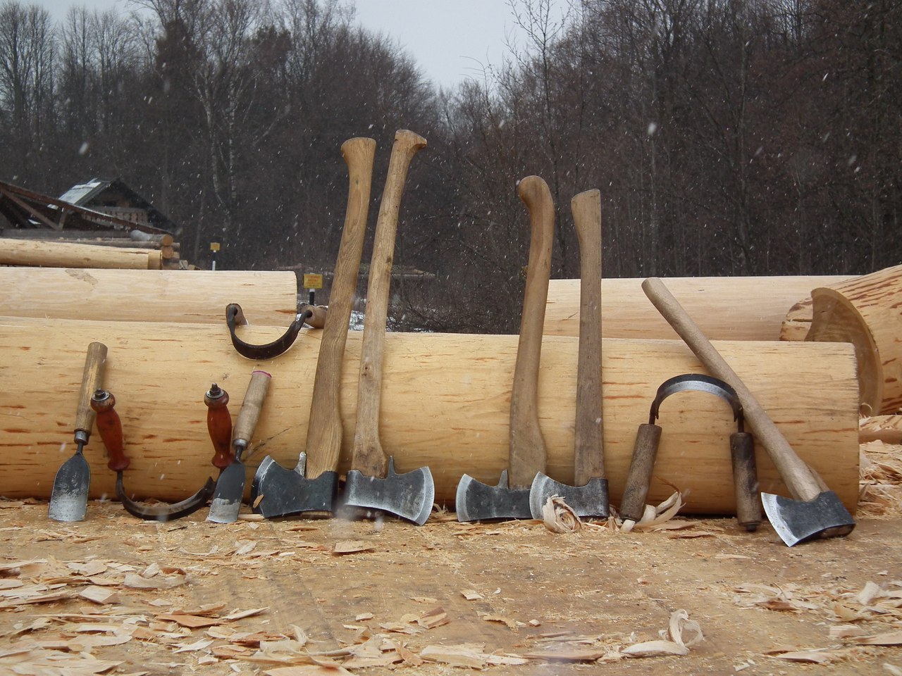 Инструмент необходимый плотнику для рубки избы. Все предельно функционально и ничего лишнего