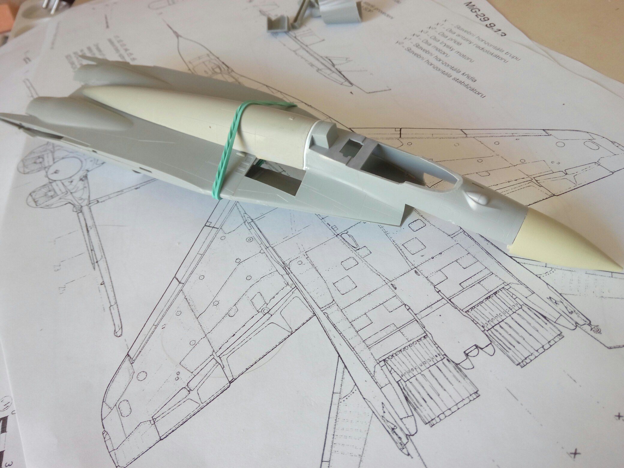 Давно я его начинал пилить... Ещё задолго до появления на свет GWH-шных МиГов. Фаршу припасена целая уйма, чертежи там всякие. В общем, решил в этот знаменательный день начать сказку о достройке МиГа от Академа.
