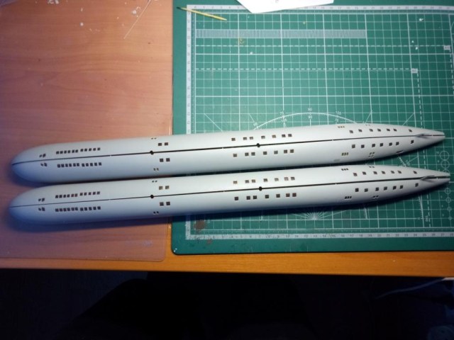 А между тем,вопрос по отверстиям на днище спорный,лодки то,секретные:-).Если по верхней части корпуса,в принципе,все более,или менее,ясно,то вот по днищу все не так однозначно.Есть еще и такой вариант: