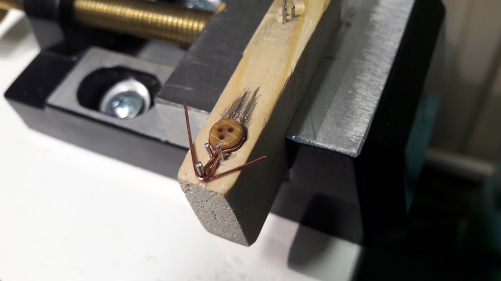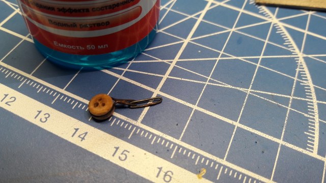 Пока приклеенные руслени подсыхали (поочередно), изготовил приспособление для "оковки" юферсов и изготовил пробный вариант.