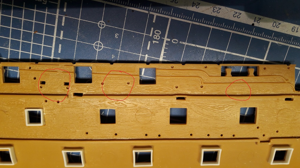 Не скрою, модель от Heller хоть и не дебильная, но переделки и доработки будет много. Чего стоит только кладка яиц какой-то бабочки, якобы изображающая свернутые и уложенные в сетки матросские гамаки (фото выложу чуть позже). Толщина бортов в три раза меньго положенной. О болтах в 140 мм я уже писал. Ну и прочее... нитки, леера, блоки, юферсы и т.д. Это не в укор производителю, его задача - имитация, ну а там каждый как хочет.
