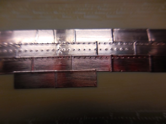 Результат меня совершенно не удовлетворил. Признаюсь честно, старался как можно ровнее клеить - не получилось. Это первая проблема. Из-за того, что не получалось ровненько приклеить испортил 6 шт. пластинок. Это вторая проблема. Как только чуть сильнее прижал пинцетом пластинку, сразу отпечаток остается и затереть его ни как не выходит. Это третья проблема. Если чуть сильнее придавил во время притирки или случайно задел ногтем, остаются борозды, которые выровнять проблематично. Это четвертая проблема. При притирке чуть не рассчитал, задел уголок уже приклеенной - капец, нужно менять. Это ещё одна проблема. Попытался нанести имитацию гвоздей - жесть (противно смотреть). И это всё на таком маленьком участочке корпуса. Если спроецировать это на всю площадь корпуса собираемого кита - для меня это будет одна большая проблема!!!