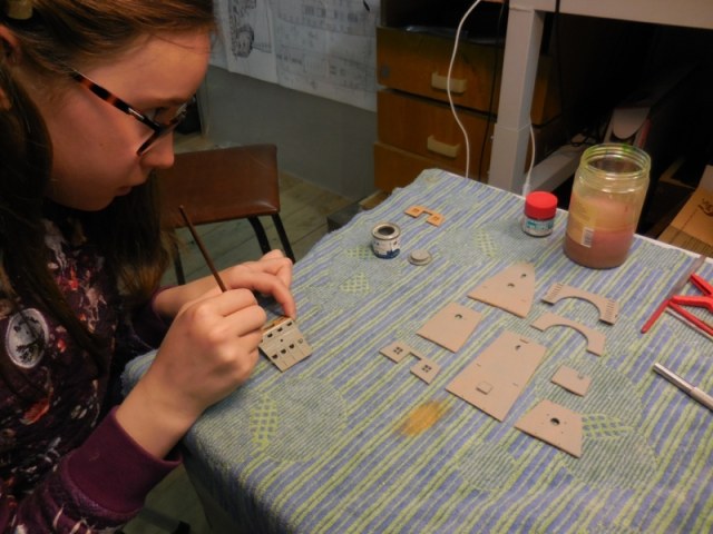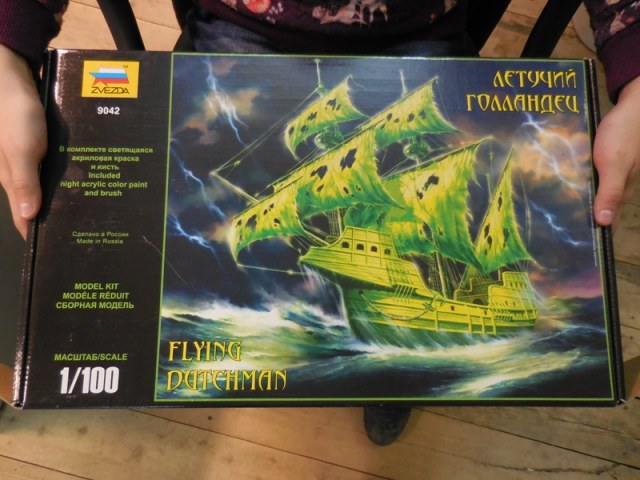 Ну и сегодня, т.к. начались каникулы в школе, ко мне присоединилась моя дочурка. У неё мечта собрать ночник от "Звезды" 1\100 "Летучий Голландец". Вот её первые шаги (не без моей помощи конечно в части зачистки и подводки границ окраски)...