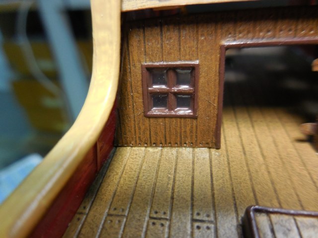 Результат первого её опыта на фото чуть выше. Скоро все окна будут застеклённые. Спросил зачем все окна стеклить, ответ последовал моментально: "Везде будут сквозняки. А зимой вся команда заболеет воспалением лёгких! Жалко будет морячков..."
