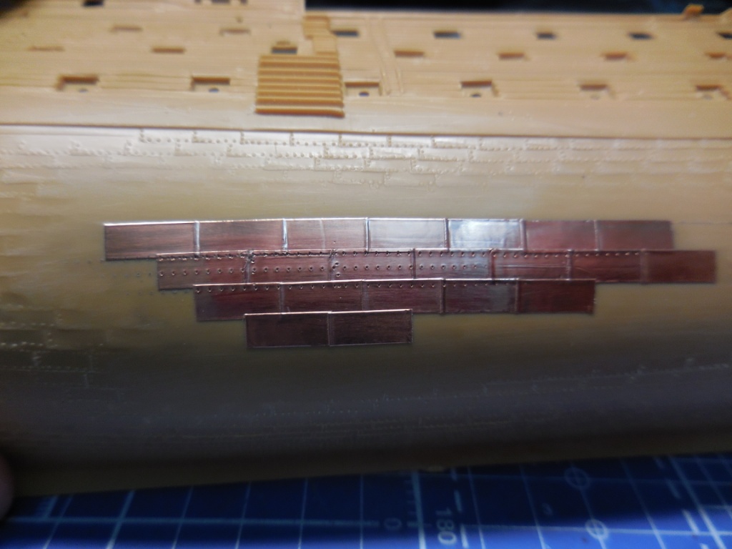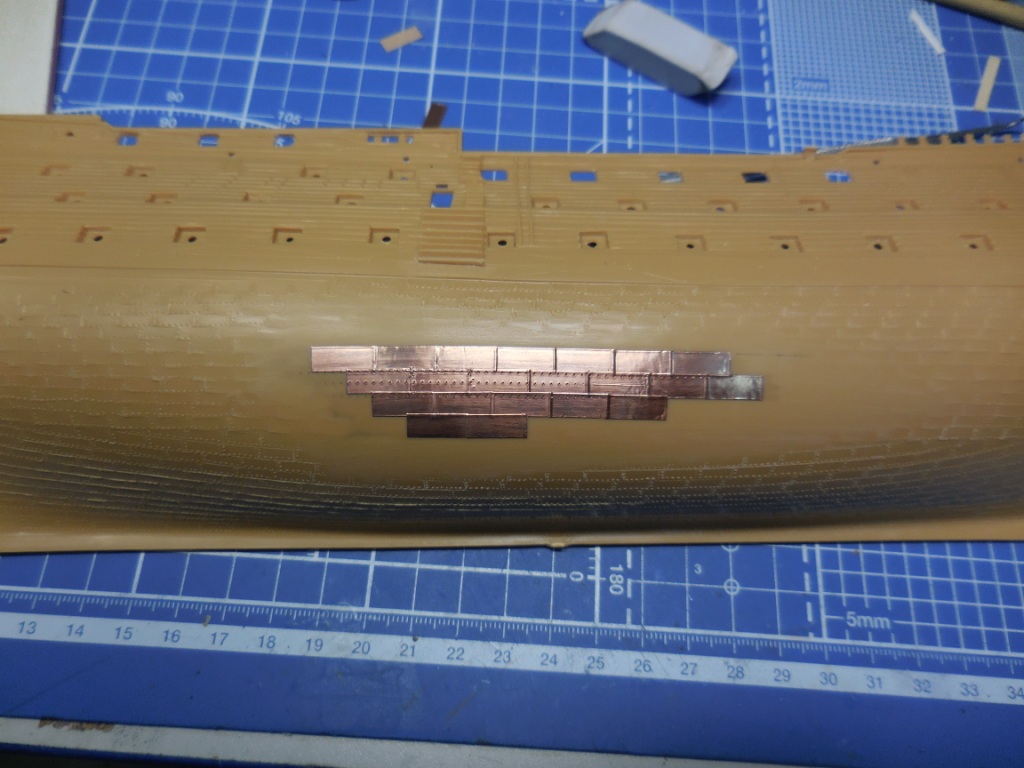 в соседней ветке бриг Меркурий строится...там вроде довольно круто получается у коллеги оклейка днища фольгой...опять же...почему то даже бумага с медью органичнее смотрится ,чем пластик-"дерево" с настоящей медью... ну на мой взгляд...а краски металлики с эфектом патины...сейчас есть в продаже во множестве оттенков...