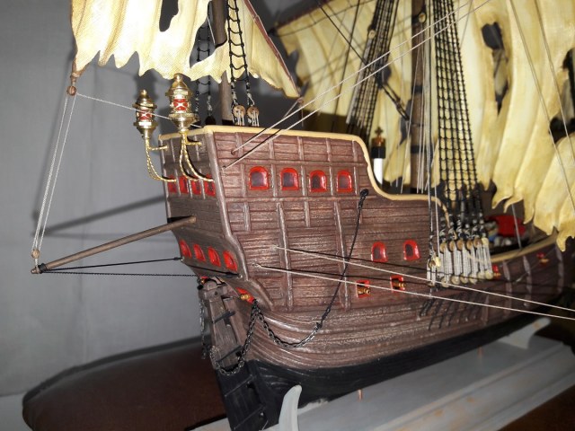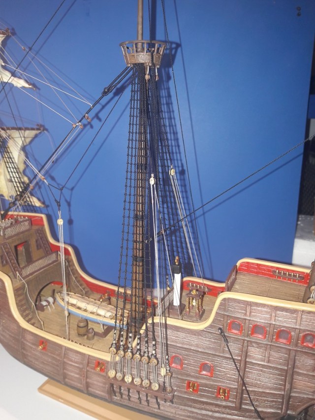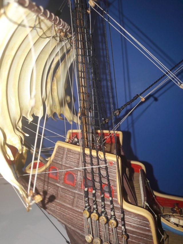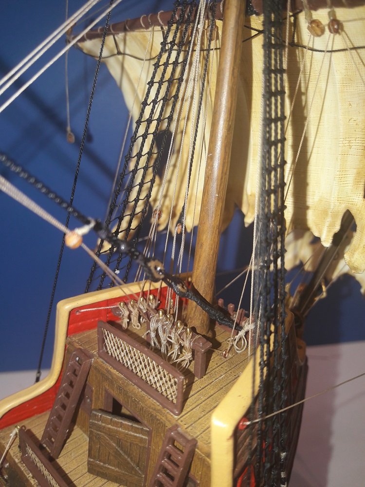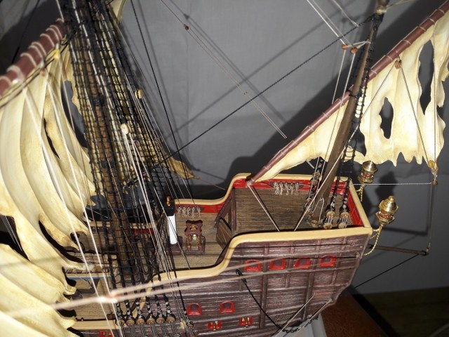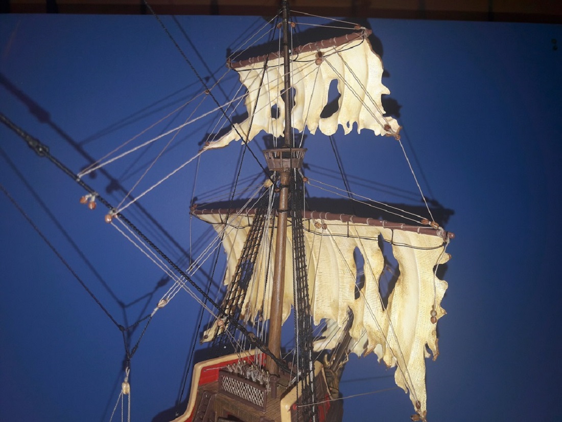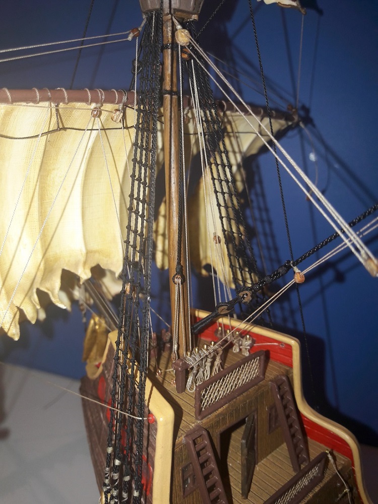 ...или может какой то визуальный эффект... если сравнивать с фото реального корабля, то такое впечатление,что на модели выбленочные узлы слишком крупные...хотя когда фотку вант модели рассматриваешь - вроде нить для выбленок достаточно тонкая...